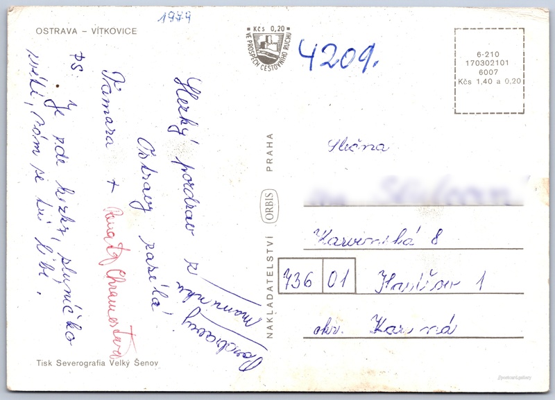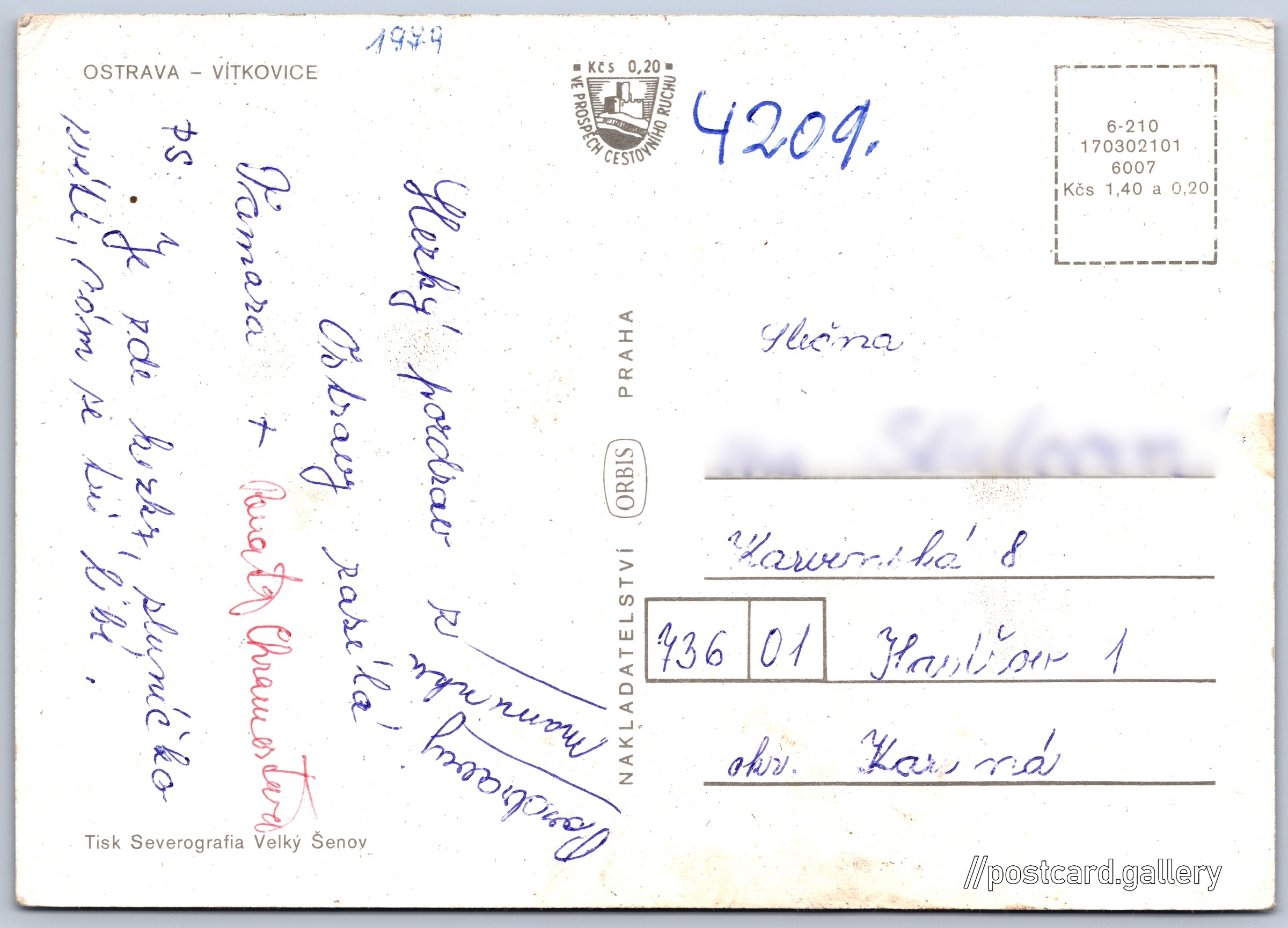 Ostrava - Vítkovice Pokud chcete vidět pohlednice ve vyšším rozlišení nebo zobrazovat jejich zadní stranu, tak se prosím nejdříve přihlašte Přihlásit Zaregistrovat Ostrava Vítkovice OSTRAVA - VÍTKOVICE Jazyk tištěného textu na pohlednici: čeština Vítkovice, Ostrava, Ostrava-město ukázat na mapě Vydavatel: Nakladatelství Orbis (Československo) Datum vydání není známo Pomozte nám odhadnout datum vzniku pohlednice Velikost (š x v) a tvar pohlednice: 147 x 104 mm (5.79" x 4.09"), obdélník Prošlá poštou Ceny: Cena pohlednice: 1,40 Kčs (CSK) (+0,20 Kčs přípl. na tur. ruch) Kódy na pohlednici: 6-210 170302101 6007 DiskuseVložit příspěvek Přidat novou složku ... Spravovat složky ...