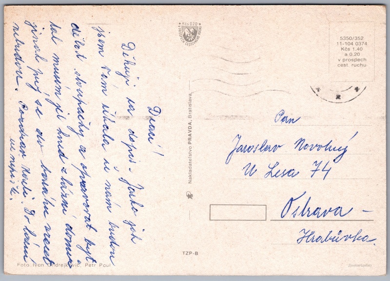 Cena pohlednice: 1,40 Kčs (CSK) (+0,20 Kčs přípl. na tur. ruch)