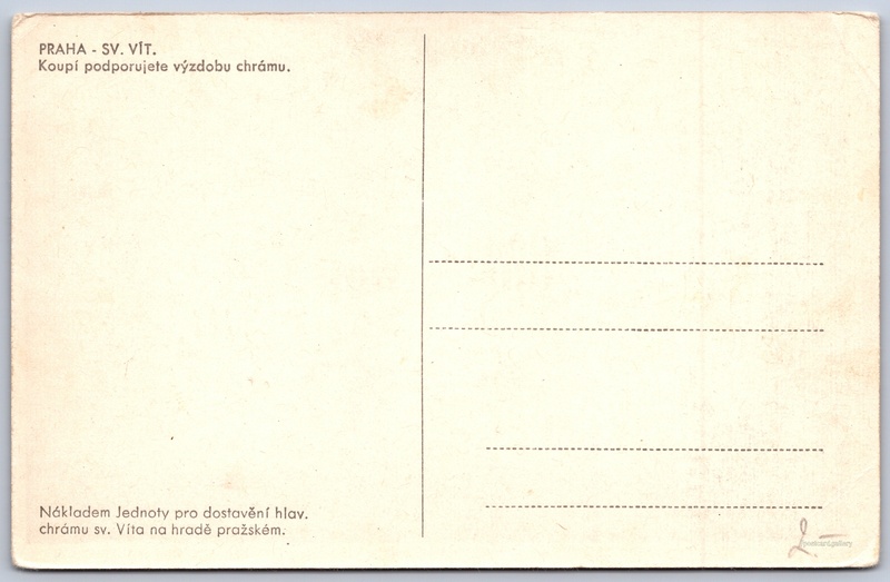 Podzemí chrámu sv. Víta Pokud chcete vidět pohlednice ve vyšším rozlišení nebo zobrazovat jejich zadní stranu, tak se prosím nejdříve přihlašte Přihlásit Zaregistrovat PRAHA - SV. VÍT.Koupí podporujete výzdobu chrámu.Nákladem Jednoty pro dostavění hlav. chrámu sv. Víta na hradě pražském. Jazyk tištěného textu na pohlednici: čeština Katedrála sv. Víta, Václava a Vojtěcha, Kostel, Vikářská, Praha, Česko ukázat na mapě Datum vydání není známo Pomozte nám odhadnout datum vzniku pohlednice Velikost (š x v) a tvar pohlednice: 139 x 90 mm (5.47" x 3.54"), obdélník Čistá pohlednice (neprošlá poštou) DiskuseVložit příspěvek Přidat novou složku ... Spravovat složky ...