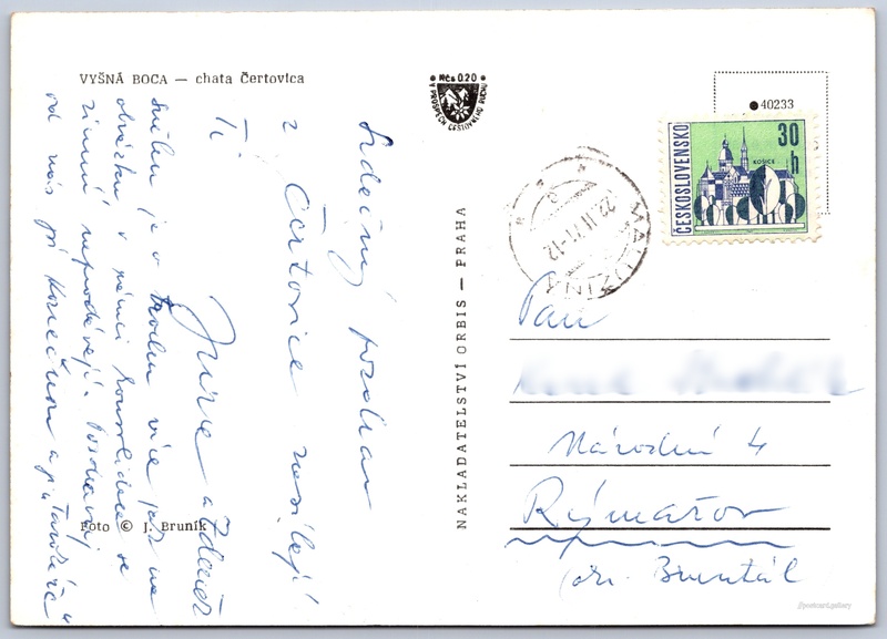 Jarabá 74 (#CS-2588) Pokud chcete vidět pohlednice ve vyšším rozlišení nebo zobrazovat jejich zadní stranu, tak se prosím nejdříve přihlašte Přihlásit Zaregistrovat Jazyk tištěného textu na pohlednici: slovenština Jarabá 74 ukázat na mapě V blízkém okolí místa zobrazeného na pohlednici lze najít 4 jiné pohlednice. Zobrazit blízké pohlednice Vydavatel: Nakladatelství Orbis (Československo) Odhadované datum vydání pohlednice: 1968 - 1971 Pomozte nám zpřesnit rok vzniku pohlednice Velikost (š x v) a tvar pohlednice: 146 x 103 mm (5.75" x 4.06"), obdélník Osoby spjaté s touto pohlednicí: Jiří Bruník(Autor fotografie) Prošlá poštou:Datum na razítku: 22.2.1971 Ceny: Příplatek na tur. ruch: 0,20 Kčs (CSK))Vyplacené známky: 0,30 Kčs (CSK) Kódy na pohlednici: •40233 DiskuseVložit příspěvek Přidat novou složku ... Spravovat složky ...