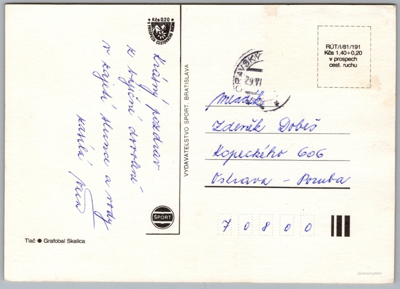 Cena pohlednice: 1,40 Kčs (CSK) (+0,20 Kčs přípl. na tur. ruch)