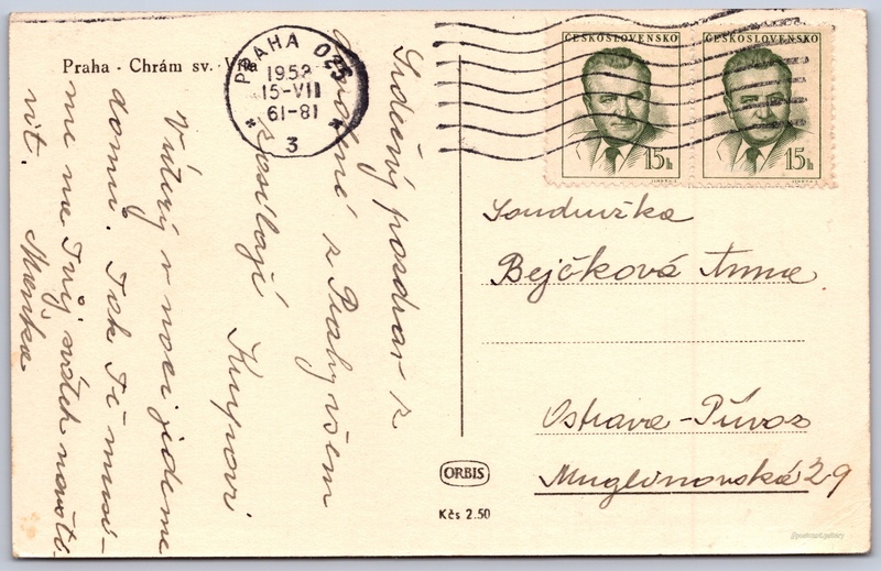 Praha, chrám sv. Víta Pokud chcete vidět pohlednice ve vyšším rozlišení nebo zobrazovat jejich zadní stranu, tak se prosím nejdříve přihlašte Přihlásit Zaregistrovat Praha - Chrám sv. Víta Jazyk tištěného textu na pohlednici: čeština Třetí nádvoří Pražského hradu 48/2, 119 00 Praha 1-Hradčany, Czechia ukázat na mapě Vydavatel: Nakladatelství Orbis (Československo) Odhadované datum vydání pohlednice: 1949 - 1952 Pomozte nám zpřesnit rok vzniku pohlednice Velikost (š x v) a tvar pohlednice: 140 x 89 mm (5.51" x 3.50"), obdélník Prošlá poštou:Datum na razítku: 15.7.1952 Ceny: Cena pohlednice: 2,50 Kčs (CSK)Vyplacené známky: 0,30 Kčs (CSK) DiskuseVložit příspěvek Přidat novou složku ... Spravovat složky ...