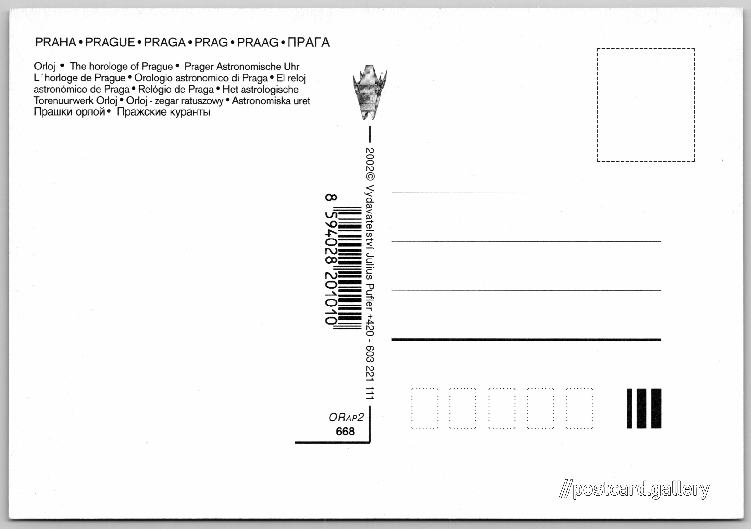 Jazyky tištěného textu na pohlednici: