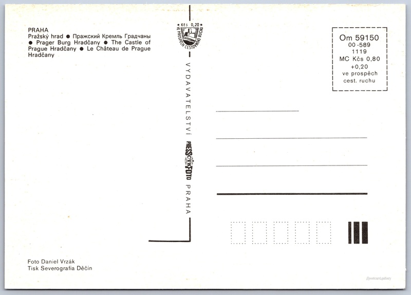 Praha, Pražský Hrad Pokud chcete vidět pohlednice ve vyšším rozlišení nebo zobrazovat jejich zadní stranu, tak se prosím nejdříve přihlašte Přihlásit Zaregistrovat PRAHA- Pražský hrad- Пражский Кремль Градчаны- Prager Burg Hradčany- The Castle of Prague Hradčany- Le Château de Prague Hradčany Jazyky tištěného textu na pohlednici: čeština, ruština, němčina, angličtina, francouzština, francouzština Pražský hrad, Hrad, Hrad III. nádvoří, Praha, Česko ukázat na mapě V blízkém okolí místa zobrazeného na pohlednici lze najít 159 jiných pohlednic. Zobrazit blízké pohlednice Vydavatel: PressFoto Praha (Československo) Rok vydání pohlednice: 1985 Velikost (š x v) a tvar pohlednice: 147 x 104 mm (5.79" x 4.09"), obdélník Osoby spjaté s touto pohlednicí: Daniel Vrzák(Autor fotografie) Čistá pohlednice (neprošlá poštou) Ceny: Cena pohlednice: 0,80 Kčs (CSK) (+0,20 Kčs přípl. na tur. ruch) Kódy na pohlednici: Om 59150 00-589 1119 DiskuseVložit příspěvek Přidat novou složku ... Spravovat složky ...