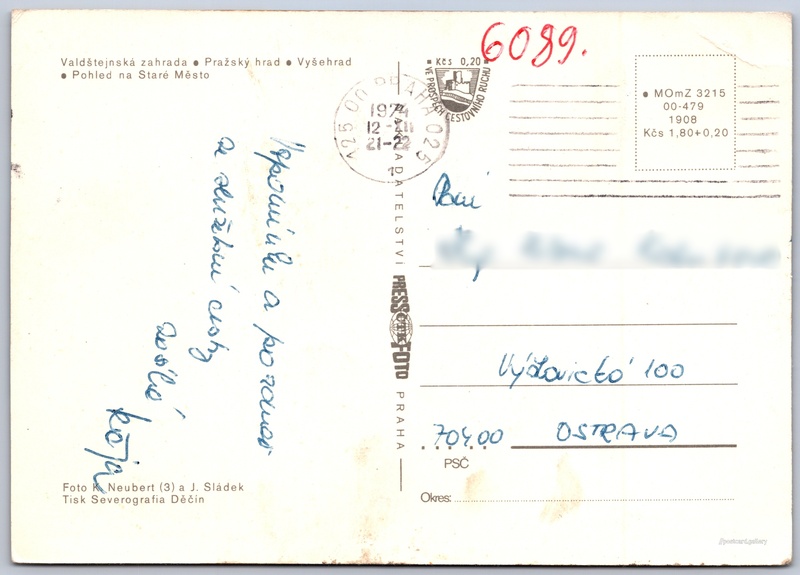 Praha Pokud chcete vidět pohlednice ve vyšším rozlišení nebo zobrazovat jejich zadní stranu, tak se prosím nejdříve přihlašte Přihlásit Zaregistrovat Praha - Valdštejnská zahrada- Pražský hrad.- Vyšehrad- Pohled na Staré Město Jazyk tištěného textu na pohlednici: čeština Praha 1, Praha, Hlavní město Praha ukázat na mapě Vydavatel: PressFoto Praha (Československo) Rok vydání pohlednice: 1974 Velikost (š x v) a tvar pohlednice: 148 x 105 mm (5.83" x 4.13"), obdélník Osoby spjaté s touto pohlednicí: Karel Neubert(Autor fotografie) J. Sládek(Autor fotografie) Prošlá poštou:Datum na razítku: 12.12.1974 Ceny: Cena pohlednice: 1,80 Kčs (CSK) (+0,20 Kčs přípl. na tur. ruch) Kódy na pohlednici: •MOmZ 3215 00-479 1908 DiskuseVložit příspěvek Přidat novou složku ... Spravovat složky ...