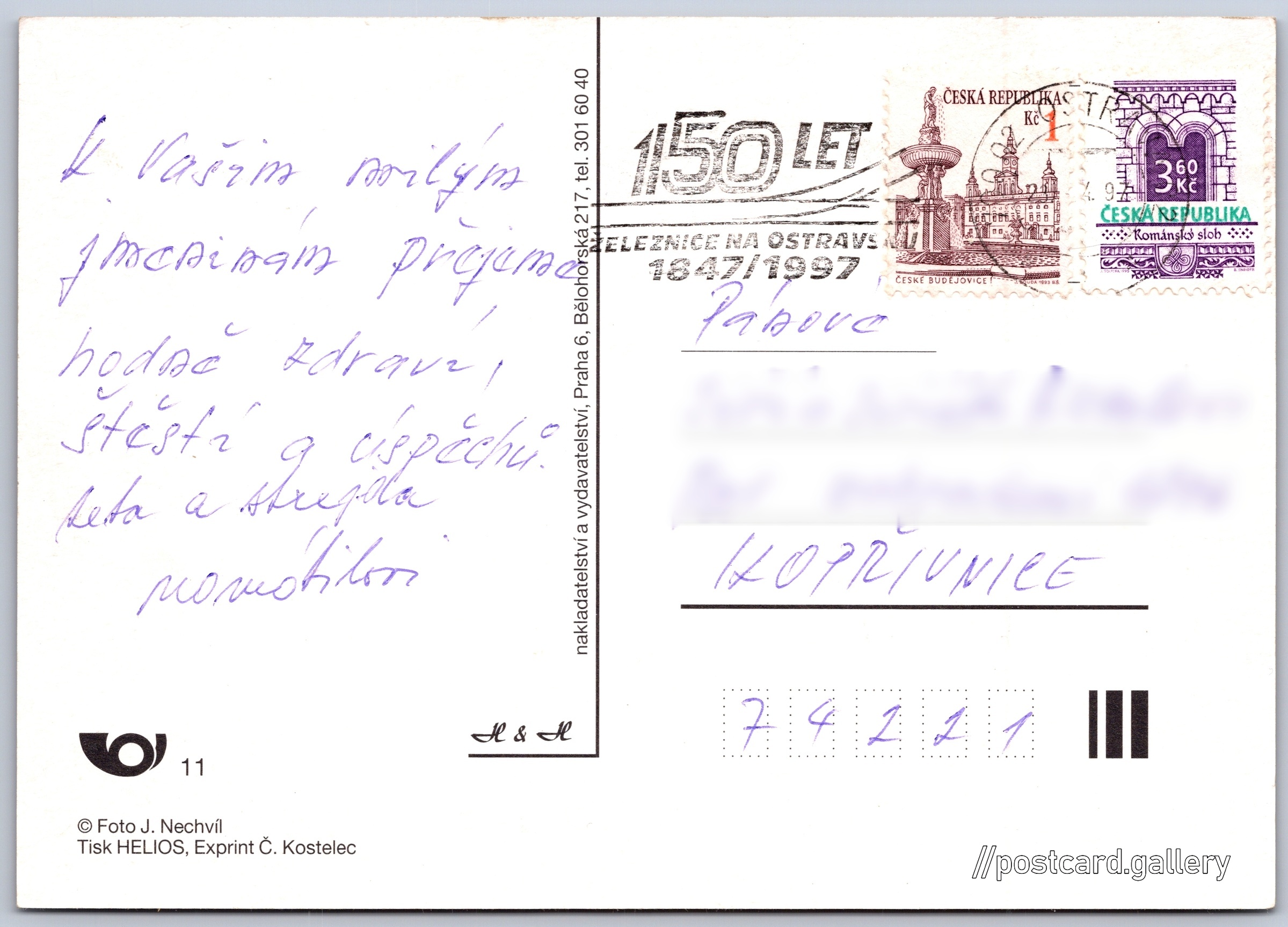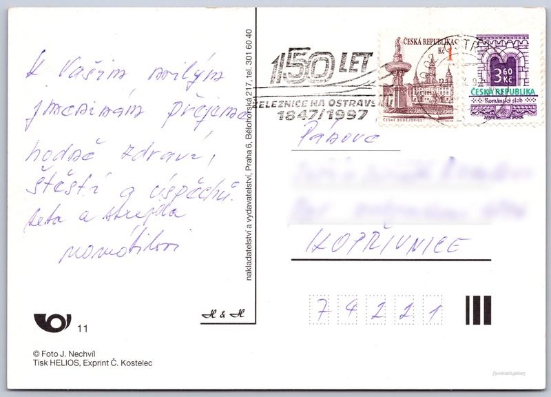 Jazyk tištěného textu na pohlednici: