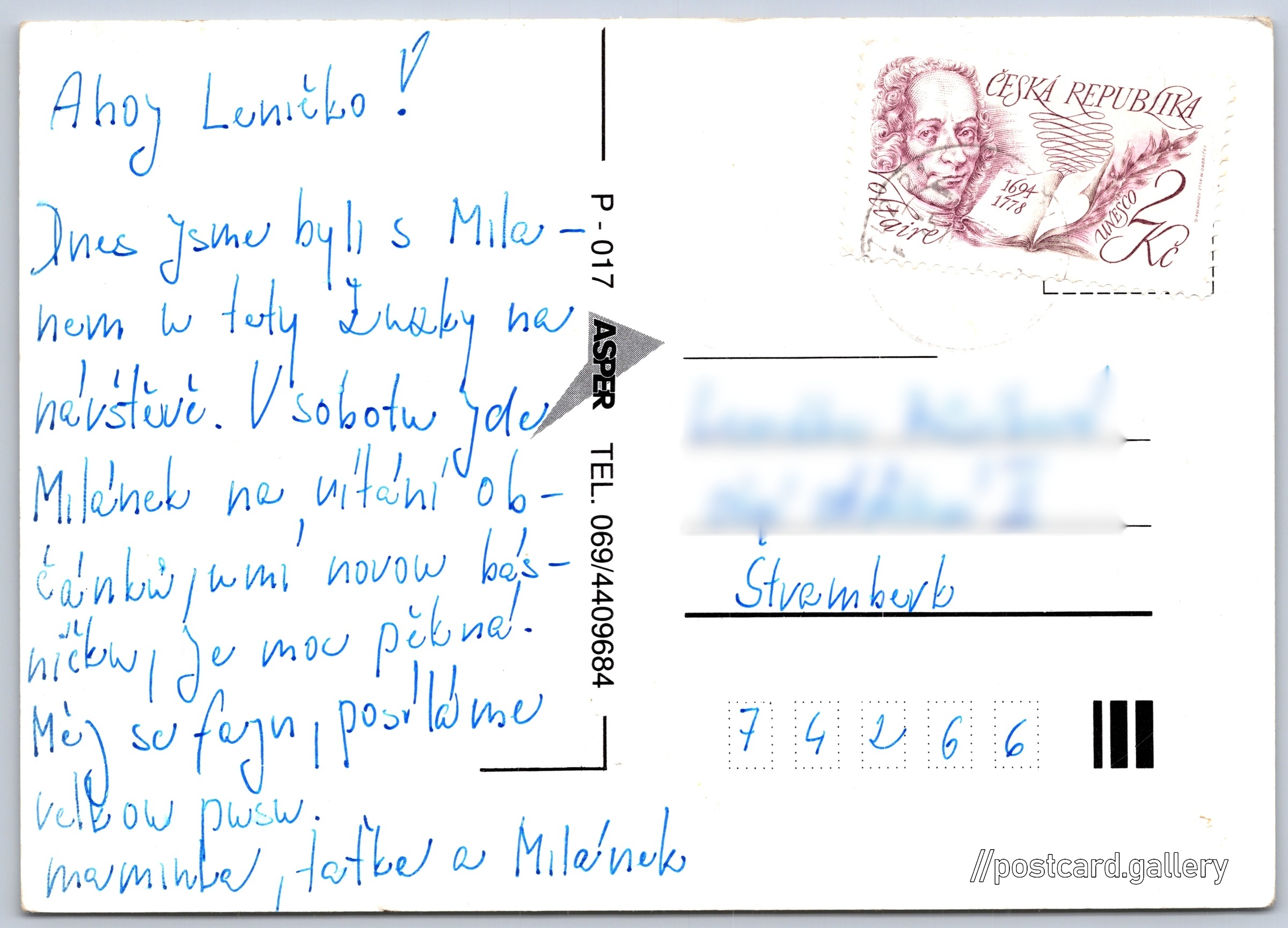 Přání, kreslený medvídek Pokud chcete vidět pohlednice ve vyšším rozlišení nebo zobrazovat jejich zadní stranu, tak se prosím nejdříve přihlašte Přihlásit Zaregistrovat Jazyk tištěného textu na pohlednici: čeština Odhadované datum vydání pohlednice: 1993 - 1994 Pomozte nám zpřesnit rok vzniku pohlednice Velikost (š x v) a tvar pohlednice: 147 x 105 mm (5.79" x 4.13"), obdélník Prošlá poštou Ceny: Vyplacené známky: 2,00 Kč (CZK) Kódy na pohlednici: P-017 DiskuseVložit příspěvek Přidat novou složku ... Spravovat složky ...