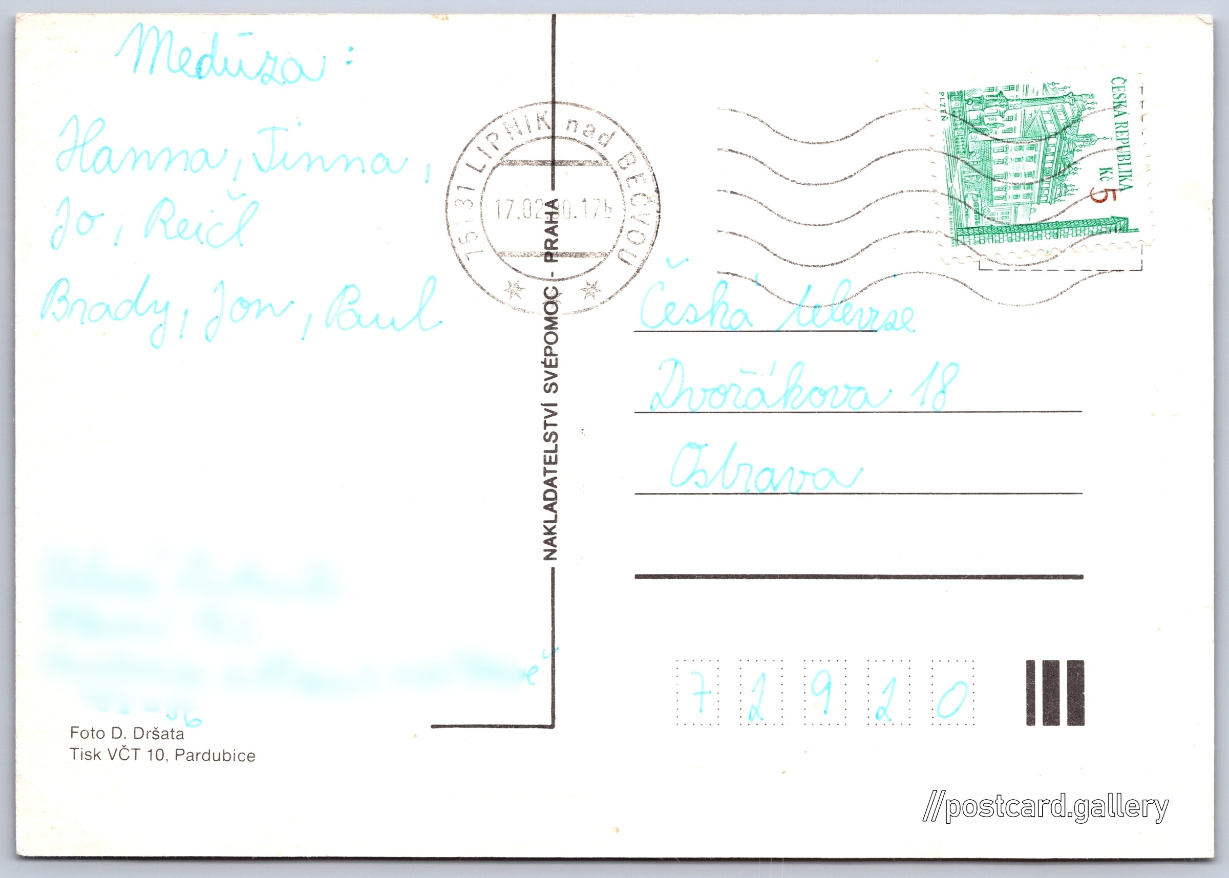 Přání, květiny Pokud chcete vidět pohlednice ve vyšším rozlišení nebo zobrazovat jejich zadní stranu, tak se prosím nejdříve přihlašte Přihlásit Zaregistrovat Jazyk tištěného textu na pohlednici: čeština Vydavatel: Nakladatelství Svépomoc, Praha (Československo) Odhadované datum vydání pohlednice: 1997 - 2000 Pomozte nám zpřesnit rok vzniku pohlednice Velikost (š x v) a tvar pohlednice: 147 x 103 mm (5.79" x 4.06"), obdélník Osoby spjaté s touto pohlednicí: Dobroslav Dršata(Autor fotografie) Prošlá poštou:Datum na razítku: 17.2.2000 Ceny: Vyplacené známky: 5,00 Kč (CZK) DiskuseVložit příspěvek Přidat novou složku ... Spravovat složky ...