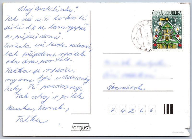 Jazyk tištěného textu na pohlednici: