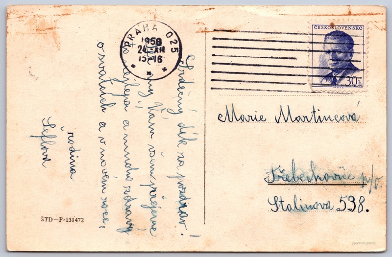 Radostné Vánoce a veselý Nový Rok Pokud chcete vidět pohlednice ve vyšším rozlišení nebo zobrazovat jejich zadní stranu, tak se prosím nejdříve přihlašte Přihlásit Zaregistrovat Radostné Vánoce a veselý Nový Rok Jazyk tištěného textu na pohlednici: čeština Odhadované datum vydání pohlednice: 1950 - 1958 Pomozte nám zpřesnit rok vzniku pohlednice Velikost (š x v) a tvar pohlednice: 138 x 90 mm (5.43" x 3.54"), obdélník Prošlá poštou:Datum na razítku: 24.12.1958 Ceny: Vyplacené známky: 0,30 Kčs (CSK) Kódy na pohlednici: ŠTD-F-131472 DiskuseVložit příspěvek Přidat novou složku ... Spravovat složky ...