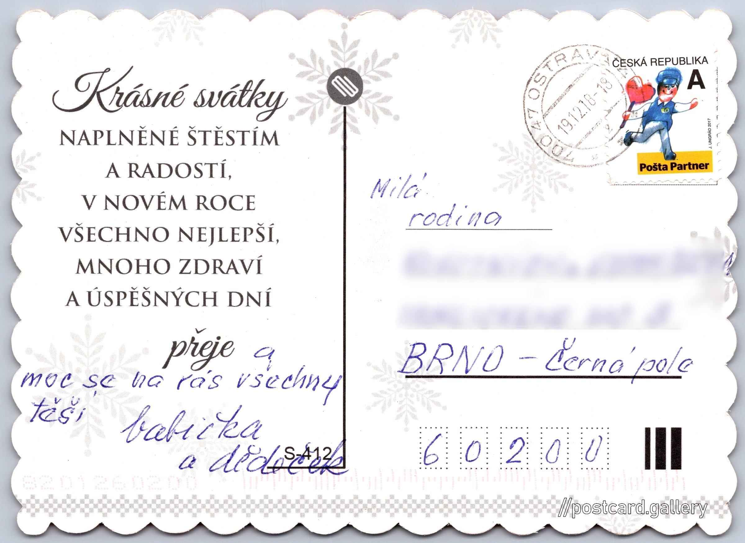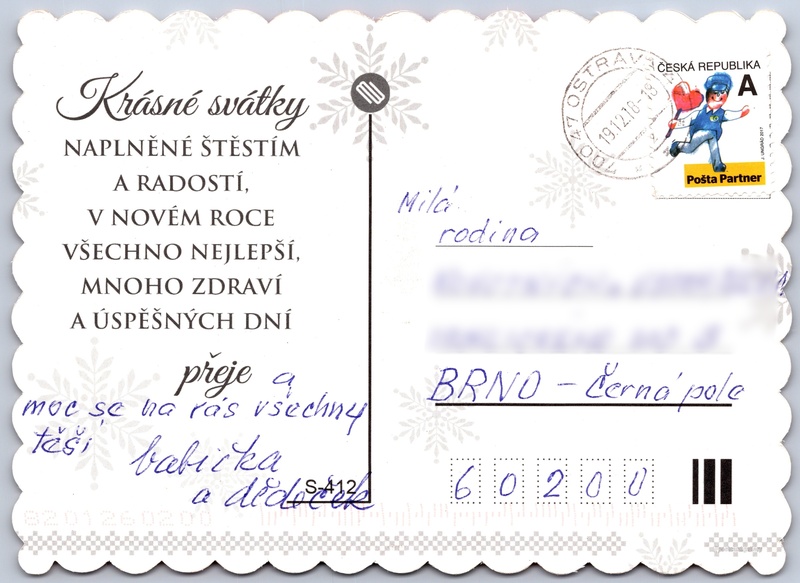 Radostné vánoce, lampička Pokud chcete vidět pohlednice ve vyšším rozlišení nebo zobrazovat jejich zadní stranu, tak se prosím nejdříve přihlašte Přihlásit Zaregistrovat Radostné Vánoce Krásné svátkyNAPLNĚNÉ ŠTĚSTÍM A RADOSTÍ, V NOVÉM ROCE VŠECHNO NEJLEPŠÍ, MNOHO ZDRAVÍ A ÚSPĚŠNÝCH DNÍpřeje Jazyk tištěného textu na pohlednici: čeština Odhadované datum vydání pohlednice: 2015 - 2018 Pomozte nám zpřesnit rok vzniku pohlednice Velikost (š x v) a tvar pohlednice: 142 x 103 mm (5.59" x 4.06"), obdélník Prošlá poštou:Datum na razítku: 19.12.2018 Kódy na pohlednici: S-412 DiskuseVložit příspěvek Přidat novou složku ... Spravovat složky ...