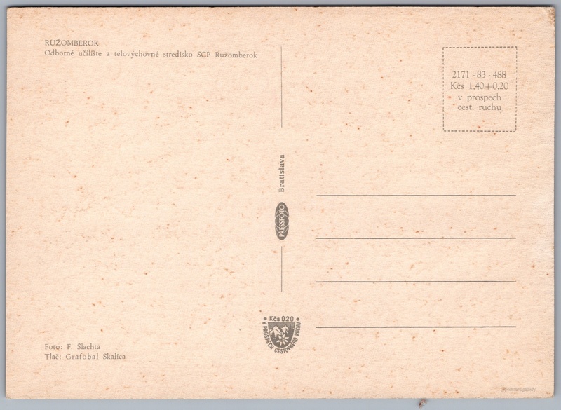 Ružomberok SCP Pokud chcete vidět pohlednice ve vyšším rozlišení nebo zobrazovat jejich zadní stranu, tak se prosím nejdříve přihlašte Přihlásit Zaregistrovat Ružomberok SCP RUŽOMBEROKOdborné učilište a telovýchovné stredisko SCP Ružomberok Jazyk tištěného textu na pohlednici: slovenština Ružomberok, Město, Slovensko ukázat na mapě V blízkém okolí místa zobrazeného na pohlednici lze najít 9 jiných pohlednic. Zobrazit blízké pohlednice Vydavatel: PressFoto Bratislava (Československo) Datum vydání není známo Pomozte nám odhadnout datum vzniku pohlednice Velikost (š x v) a tvar pohlednice: 148 x 107 mm (5.83" x 4.21"), obdélník Osoby spjaté s touto pohlednicí: František Šlachta(Autor fotografie) Čistá pohlednice (neprošlá poštou) Ceny: Cena pohlednice: 1,40 Kčs (CSK) (+0,20 Kčs přípl. na tur. ruch) Kódy na pohlednici: 2171-83-488 DiskuseVložit příspěvek Přidat novou složku ... Spravovat složky ...
