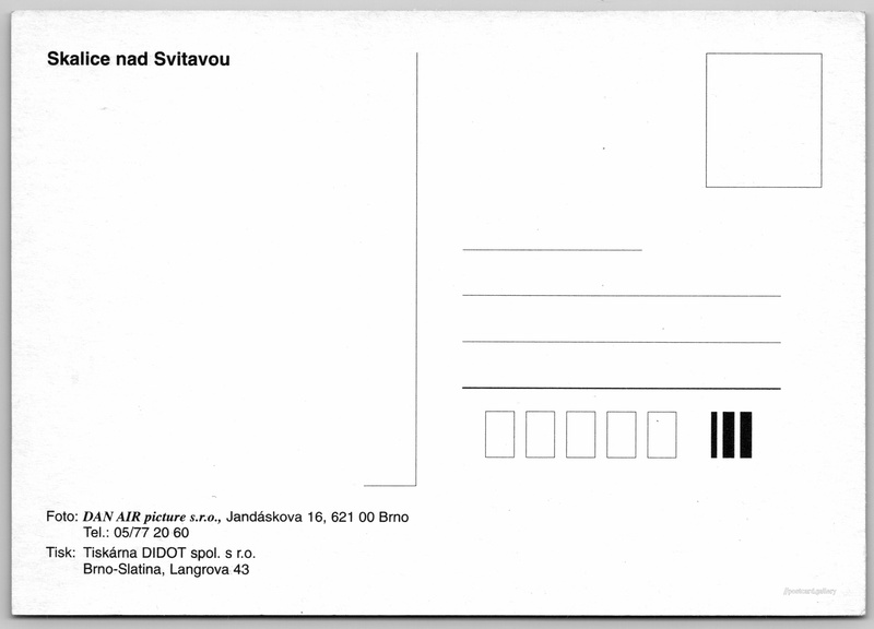 Skalice nad Svitavou 3/3 Pokud chcete vidět pohlednice ve vyšším rozlišení nebo zobrazovat jejich zadní stranu, tak se prosím nejdříve přihlašte Přihlásit Zaregistrovat Skalice nad Svitavou Skalice nad Svitavou Jazyk tištěného textu na pohlednici: čeština Skalice nad Svitavou, Obec, Česko ukázat na mapě V blízkém okolí místa zobrazeného na pohlednici lze najít 3 jiné pohlednice. Zobrazit blízké pohlednice Vydavatel: DAN AIR picture (Česko) Datum vydání není známo Pomozte nám odhadnout datum vzniku pohlednice Velikost (š x v) a tvar pohlednice: 148 x 104 mm (5.83" x 4.09"), obdélník Čistá pohlednice (neprošlá poštou) DiskuseVložit příspěvek Přidat novou složku ... Spravovat složky ...