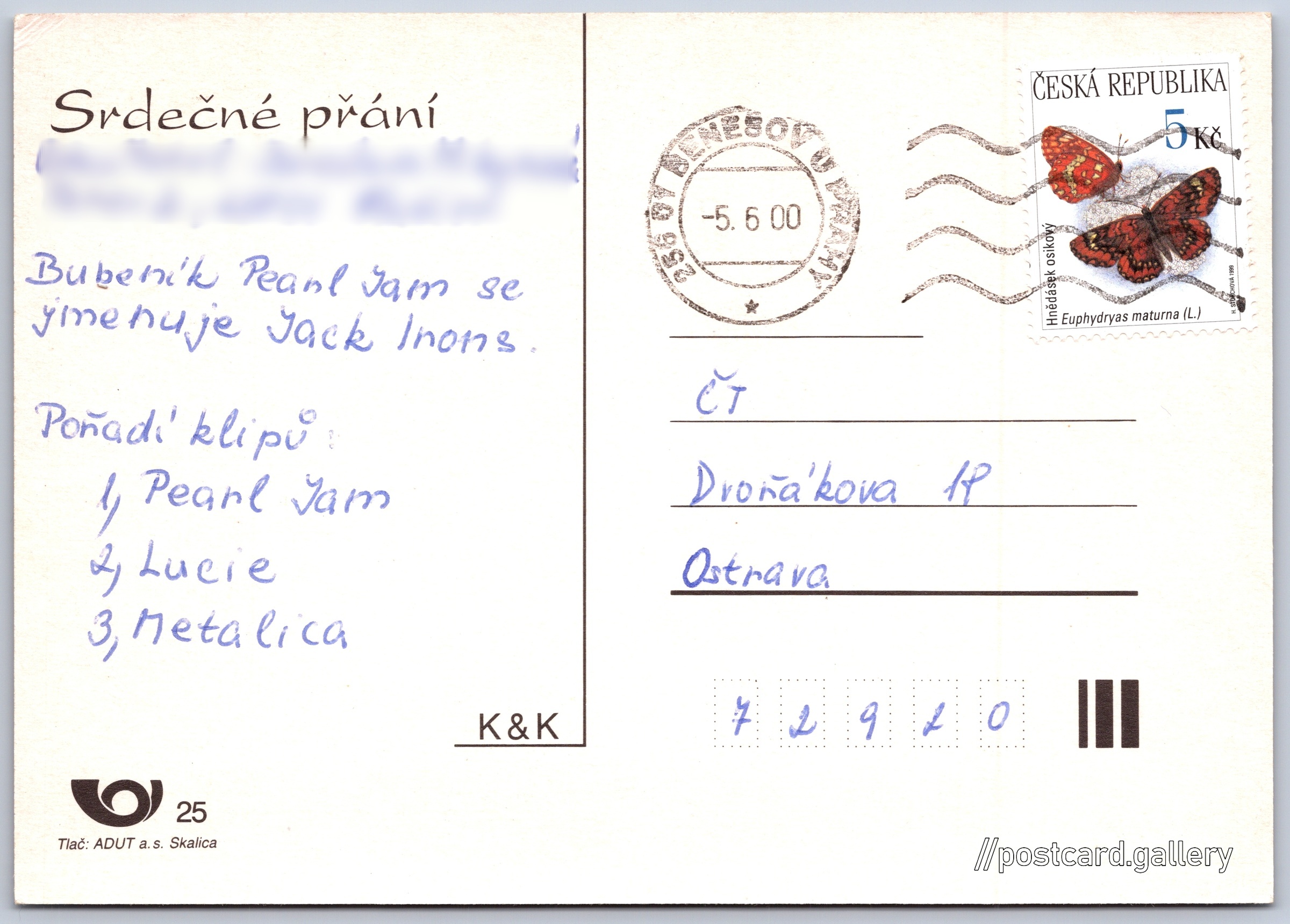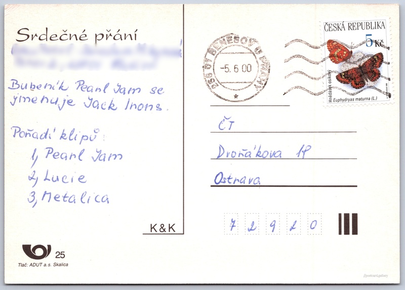 Jazyk tištěného textu na pohlednici: