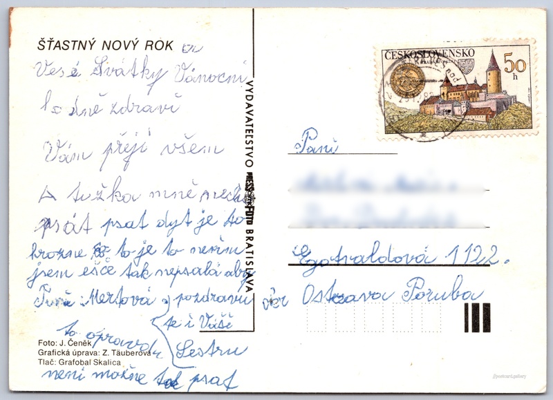 Štastný nový rok, hodiny Pokud chcete vidět pohlednice ve vyšším rozlišení nebo zobrazovat jejich zadní stranu, tak se prosím nejdříve přihlašte Přihlásit Zaregistrovat POUR FÉLICITER ŠŤASTNÝ NOVÝ ROK Jazyk tištěného textu na pohlednici: slovenština Vydavatel: PressFoto Bratislava (Československo) Odhadované datum vydání pohlednice: 1980 - 1982 Pomozte nám zpřesnit rok vzniku pohlednice Velikost (š x v) a tvar pohlednice: 147 x 105 mm (5.79" x 4.13"), obdélník Osoby spjaté s touto pohlednicí: Jaroslav Čeněk(Autor fotografie) Z. Täuberová(Design pohlednice) Prošlá poštou:Datum na razítku: 23.12.1982 Ceny: Vyplacené známky: 0,50 Kčs (CSK) DiskuseVložit příspěvek Přidat novou složku ... Spravovat složky ...