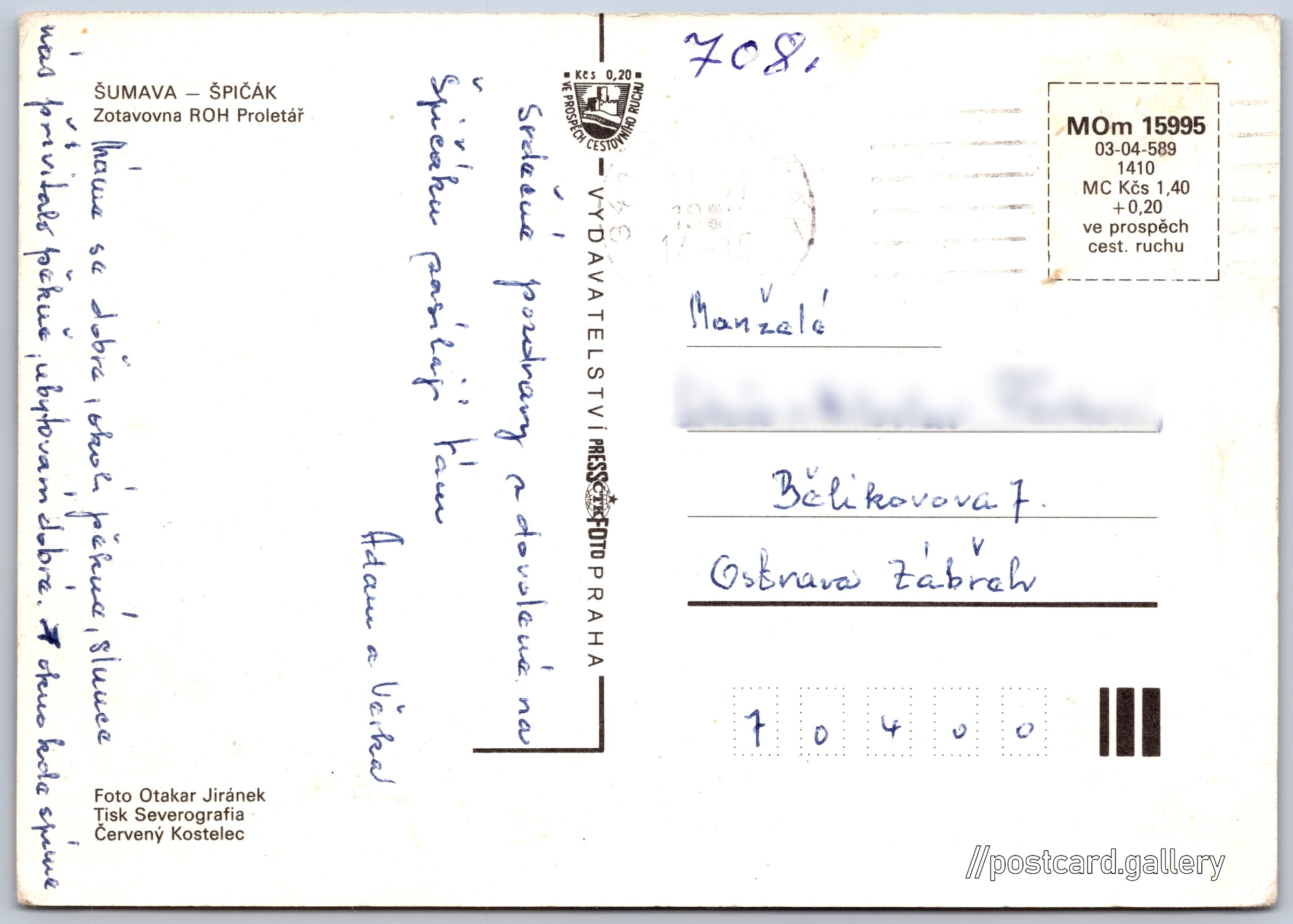 Cena pohlednice: 1,40 Kčs (CSK) (+0,20 Kčs přípl. na tur. ruch)