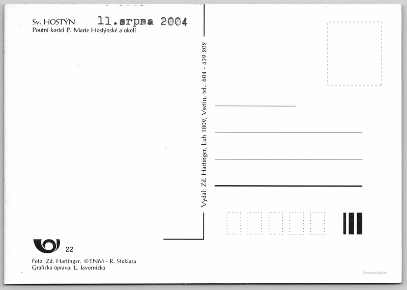 Svatý Hostýn Pokud chcete vidět pohlednice ve vyšším rozlišení nebo zobrazovat jejich zadní stranu, tak se prosím nejdříve přihlašte Přihlásit Zaregistrovat Sv. Hostýn Sv. HOSTÝNPoutní kostel P. Marie Hostýnské a okolí Jazyk tištěného textu na pohlednici: čeština Svatý Hostýn 107, 768 72 Chvalčov, Czechia ukázat na mapě V blízkém okolí místa zobrazeného na pohlednici lze najít 16 jiných pohlednic. Zobrazit blízké pohlednice Odhadované datum vydání pohlednice: 2002 - 2004 Pomozte nám zpřesnit rok vzniku pohlednice Velikost (š x v) a tvar pohlednice: 147 x 101 mm (5.79" x 3.98"), obdélník Osoby spjaté s touto pohlednicí: Zd. Hartinger(Autor fotografie) L. Javornická(Design pohlednice) Čistá pohlednice (neprošlá poštou) Kódy na pohlednici: 22 DiskuseVložit příspěvek Přidat novou složku ... Spravovat složky ...