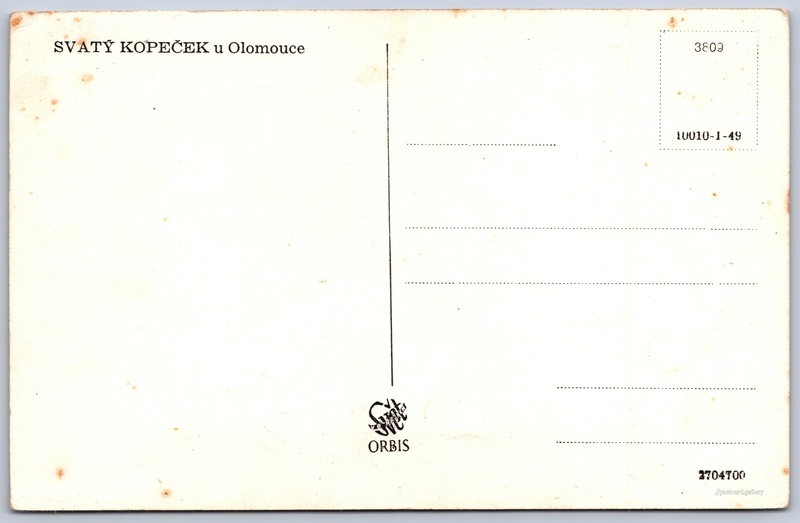Svatý kopeček u Olomouce Pokud chcete vidět pohlednice ve vyšším rozlišení nebo zobrazovat jejich zadní stranu, tak se prosím nejdříve přihlašte Přihlásit Zaregistrovat SVATÝ KOPEČEK u Olomouce Jazyk tištěného textu na pohlednici: čeština Návrší Jana Pavla II., Olomouc, Olomouc ukázat na mapě Vydavatel: Nakladatelství Orbis (Československo) Rok vydání pohlednice: 1949 Velikost (š x v) a tvar pohlednice: 139 x 90 mm (5.47" x 3.54"), obdélník Čistá pohlednice (neprošlá poštou) Kódy na pohlednici: 3809 10010-I-49 2704700 DiskuseVložit příspěvek Přidat novou složku ... Spravovat složky ...