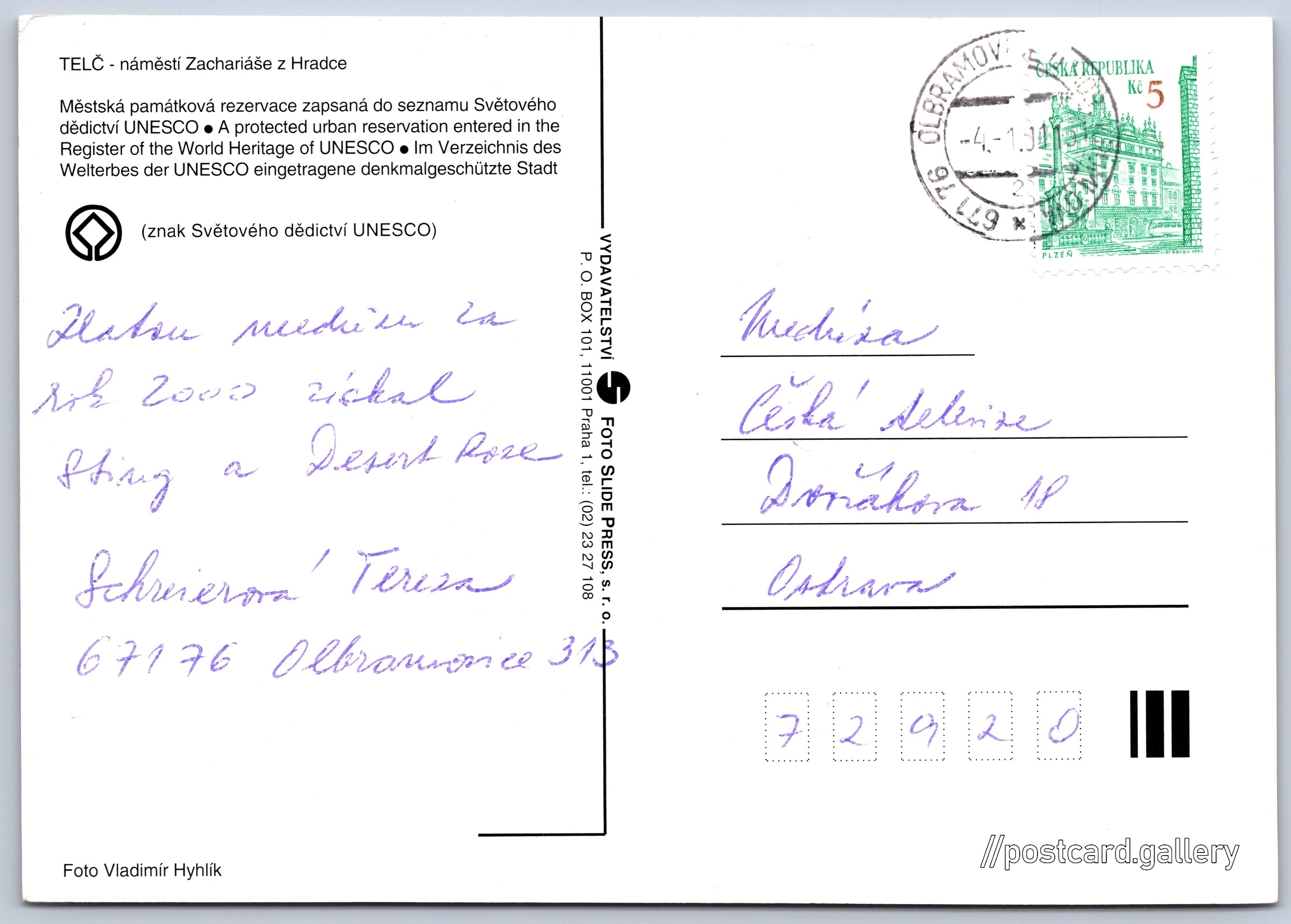 Jazyky tištěného textu na pohlednici: