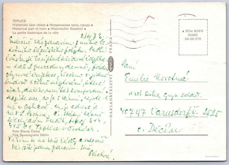 Jazyky tištěného textu na pohlednici: