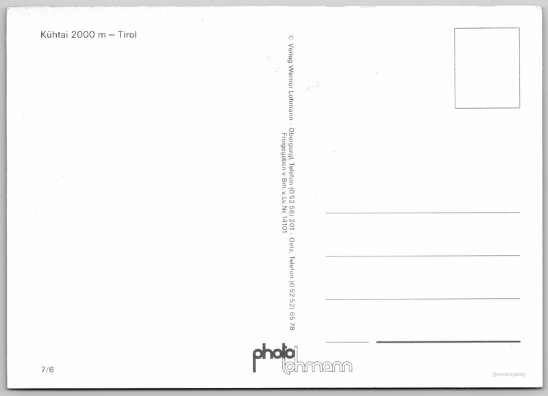 Tirolsko, Kühtai Pokud chcete vidět pohlednice ve vyšším rozlišení nebo zobrazovat jejich zadní stranu, tak se prosím nejdříve přihlašte Přihlásit Zaregistrovat Kühtai 2000 m - Tirol Jazyk tištěného textu na pohlednici: němčina Kühtai Saddle (2017 m), Horské sedlo, Silz, Rakousko ukázat na mapě Vydavatel: Werner Lohmann (Rakousko) Datum vydání není známo Pomozte nám odhadnout datum vzniku pohlednice Velikost (š x v) a tvar pohlednice: 149 x 106 mm (5.87" x 4.17"), obdélník Čistá pohlednice (neprošlá poštou) Kódy na pohlednici: 7/6 DiskuseVložit příspěvek Přidat novou složku ... Spravovat složky ...
