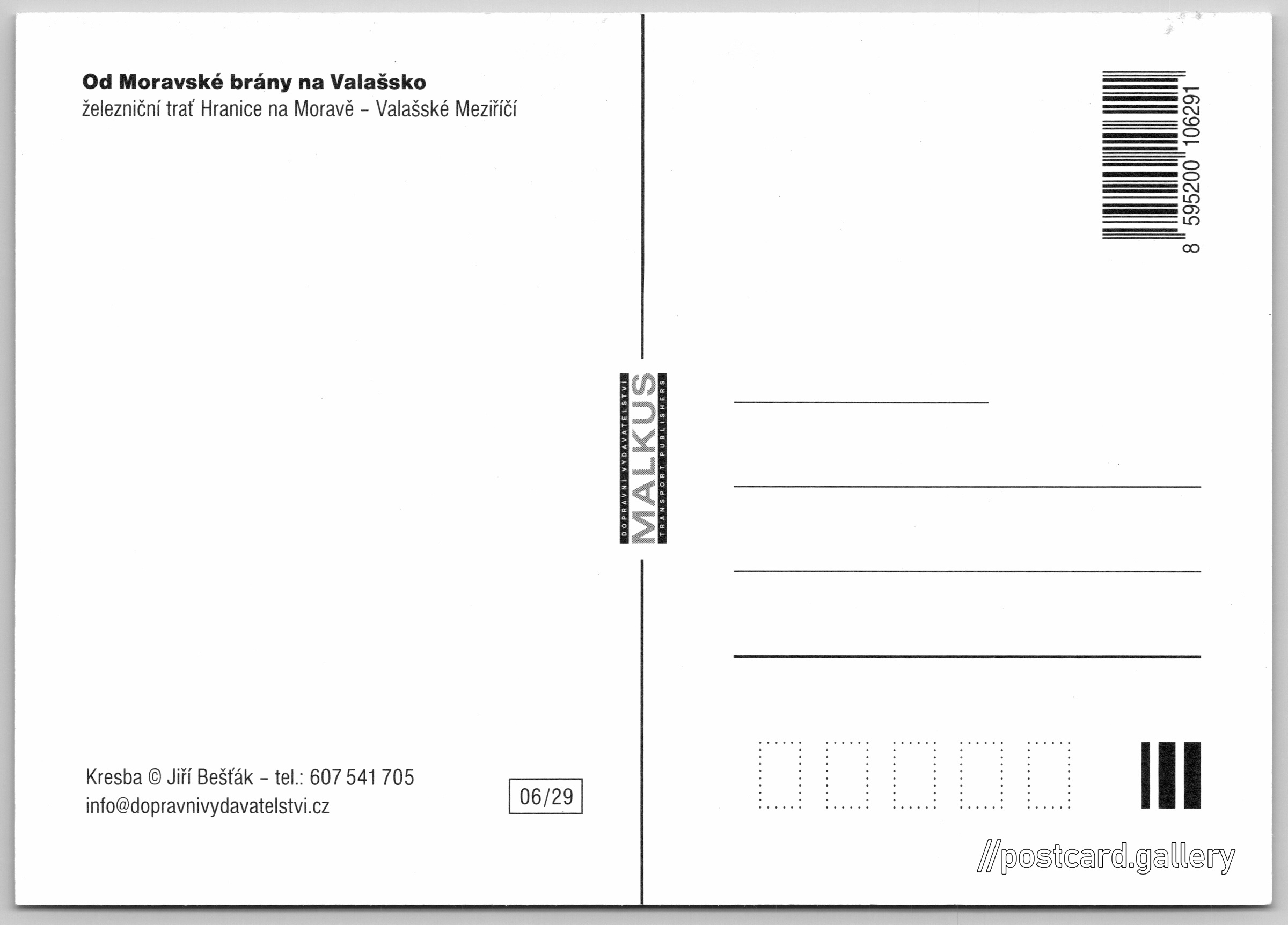 Valašsko, železniční mapa 1/4 Pokud chcete vidět pohlednice ve vyšším rozlišení nebo zobrazovat jejich zadní stranu, tak se prosím nejdříve přihlašte Přihlásit Zaregistrovat Od Moravské brány na Valašskoželezniční trať Hranice na Moravě - Valašské MeziříčíKresba © Jiří Bešťák - tel.: 607 541 705info@dopravnivydavatelstvi.cz Jazyk tištěného textu na pohlednici: čeština Bystřice pod Hostýnem, Město, Česko ukázat na mapě V blízkém okolí místa zobrazeného na pohlednici lze najít 19 jiných pohlednic. Zobrazit blízké pohlednice Vydavatel: Dopravní vydavatelství Malkus (Česko) Datum vydání není známo Pomozte nám odhadnout datum vzniku pohlednice Velikost (š x v) a tvar pohlednice: 148 x 105 mm (5.83" x 4.13"), obdélník Osoby spjaté s touto pohlednicí: Jiří Bešťák(Design pohlednice) Čistá pohlednice (neprošlá poštou) Kódy na pohlednici: 8595200106291 06/29 DiskuseVložit příspěvek Přidat novou složku ... Spravovat složky ...