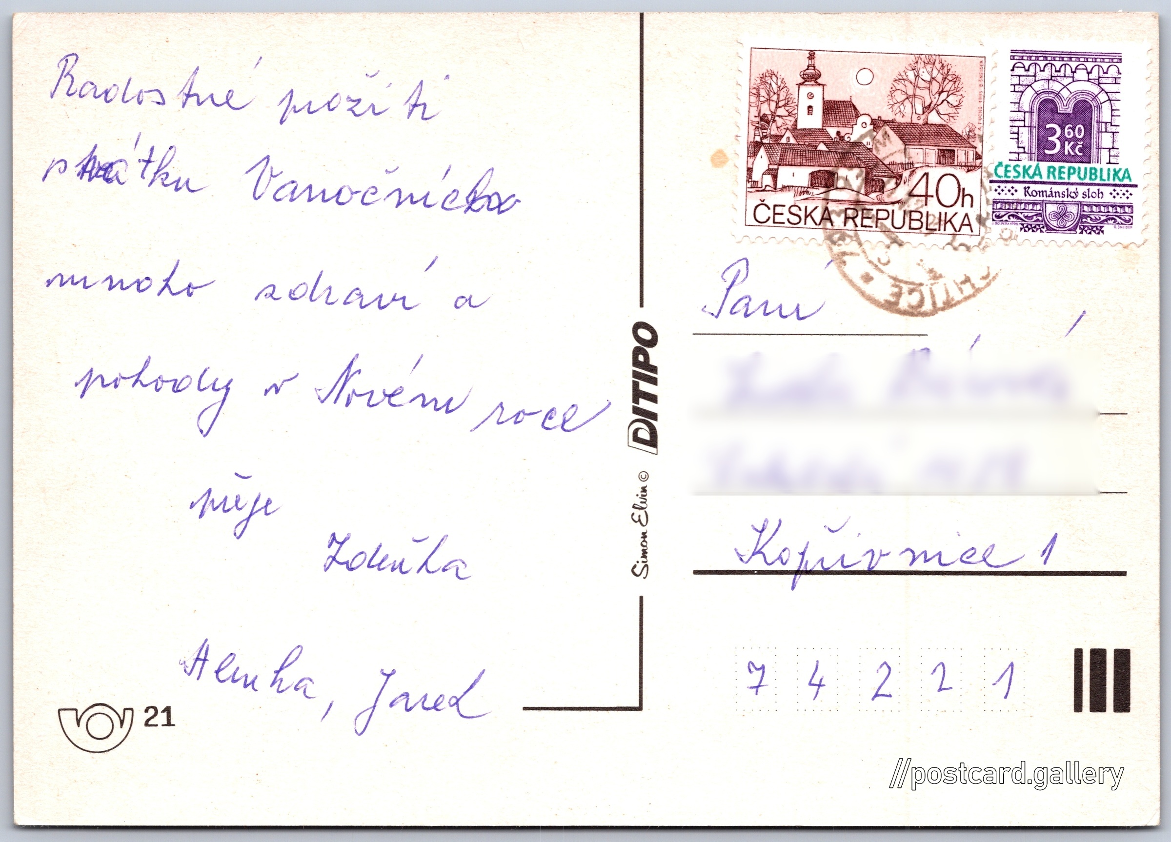 Jazyk tištěného textu na pohlednici: