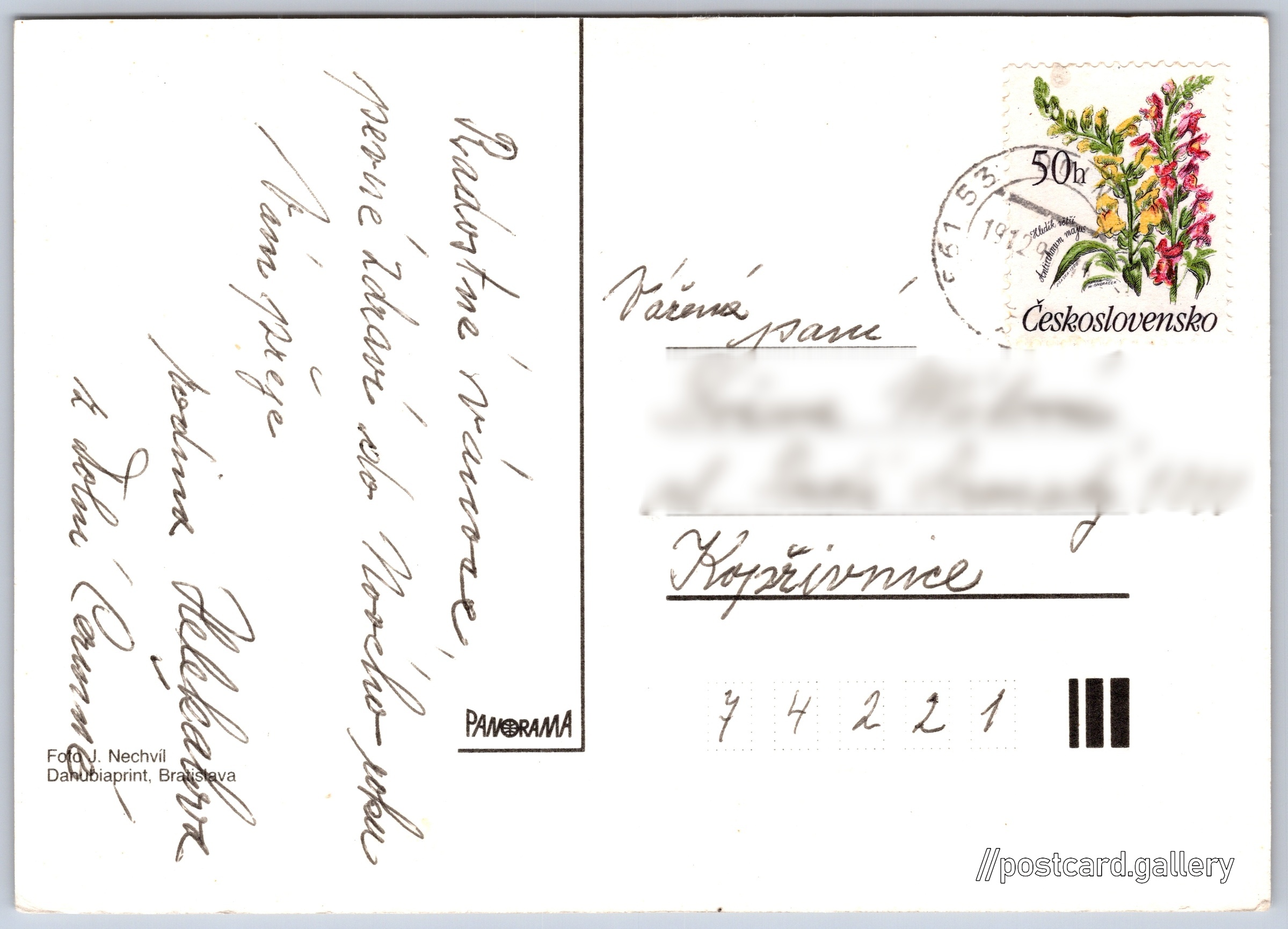 Jazyk tištěného textu na pohlednici:
