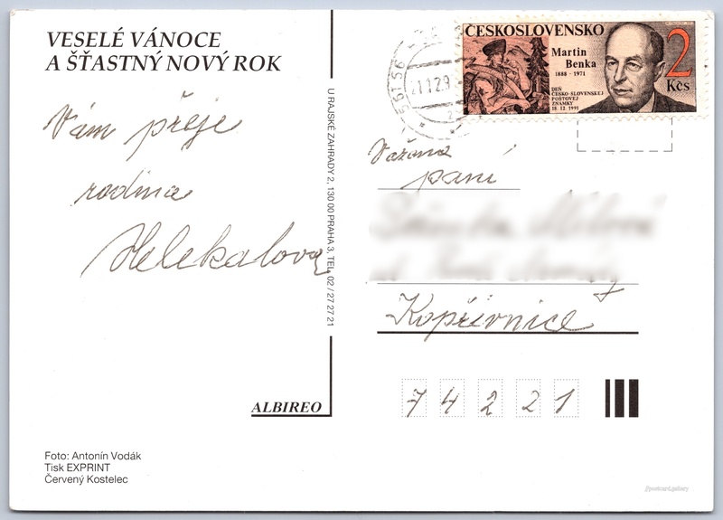 Vánoční přání, hořící svíčky, ořechy Pokud chcete vidět pohlednice ve vyšším rozlišení nebo zobrazovat jejich zadní stranu, tak se prosím nejdříve přihlašte Přihlásit Zaregistrovat VESELÉ VÁNOCE A ŠŤASTNÝ NOVÝ ROK Jazyk tištěného textu na pohlednici: čeština Vydavatel: Albireo (Československo) Odhadované datum vydání pohlednice: 1990 - 1992 Pomozte nám zpřesnit rok vzniku pohlednice Velikost (š x v) a tvar pohlednice: 148 x 105 mm (5.83" x 4.13"), obdélník Osoby spjaté s touto pohlednicí: Antonín Vodák(Autor fotografie) Prošlá poštou Ceny: Vyplacené známky: 2,00 Kčs (CSK) DiskuseVložit příspěvek Přidat novou složku ... Spravovat složky ...
