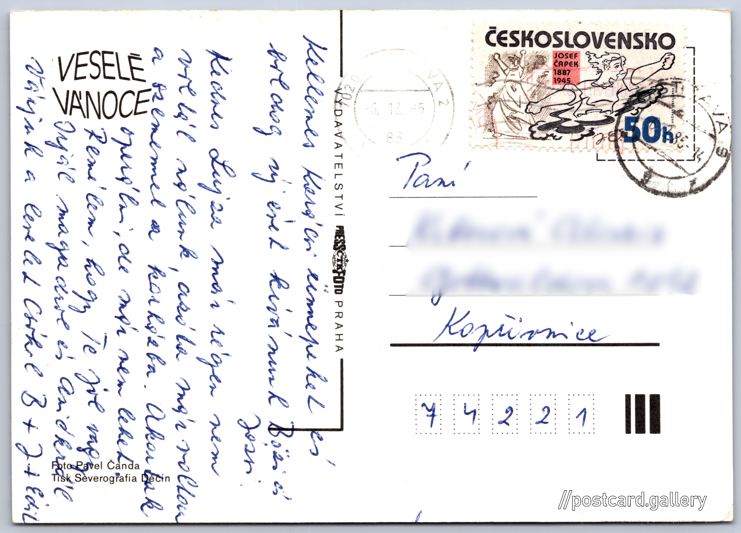 Vánoční přání, jablko Pokud chcete vidět pohlednice ve vyšším rozlišení nebo zobrazovat jejich zadní stranu, tak se prosím nejdříve přihlašte Přihlásit Zaregistrovat VESELÉ VÁNOCE Jazyk tištěného textu na pohlednici: čeština Vydavatel: PressFoto Praha (Československo) Odhadované datum vydání pohlednice: 1982 - 1985 Pomozte nám zpřesnit rok vzniku pohlednice Velikost (š x v) a tvar pohlednice: 148 x 105 mm (5.83" x 4.13"), obdélník Osoby spjaté s touto pohlednicí: Pavel Čanda(Autor fotografie) Prošlá poštou:Datum na razítku: 6.12.1985 Ceny: Vyplacené známky: 0,50 Kčs (CSK) DiskuseVložit příspěvek Přidat novou složku ... Spravovat složky ...