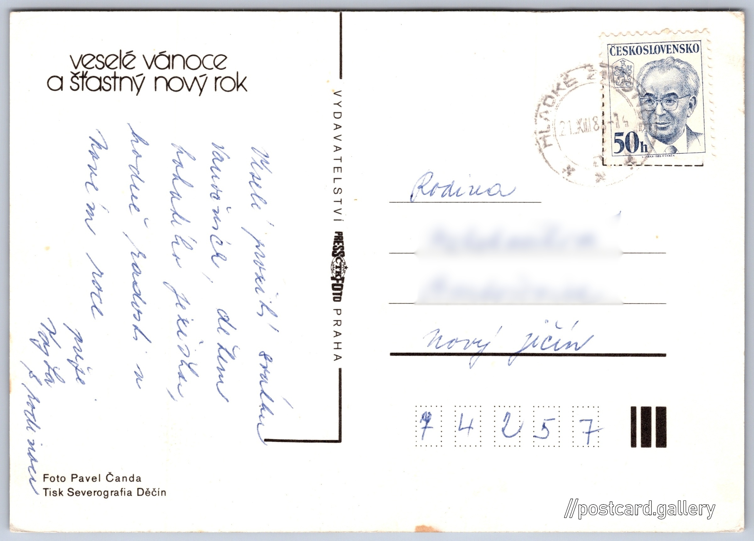 Vánoční přání, vánočka a jablka v ošatce Pokud chcete vidět pohlednice ve vyšším rozlišení nebo zobrazovat jejich zadní stranu, tak se prosím nejdříve přihlašte Přihlásit Zaregistrovat veselé vánoce a šťastný nový rok Jazyk tištěného textu na pohlednici: čeština Vydavatel: PressFoto Praha (Československo) Odhadované datum vydání pohlednice: 1985 - 1988 Pomozte nám zpřesnit rok vzniku pohlednice Velikost (š x v) a tvar pohlednice: 147 x 104 mm (5.79" x 4.09"), obdélník Osoby spjaté s touto pohlednicí: Pavel Čanda(Autor fotografie) Prošlá poštou:Datum na razítku: 21.12.1988 Ceny: Vyplacené známky: 0,50 Kčs (CSK) DiskuseVložit příspěvek Přidat novou složku ... Spravovat složky ...