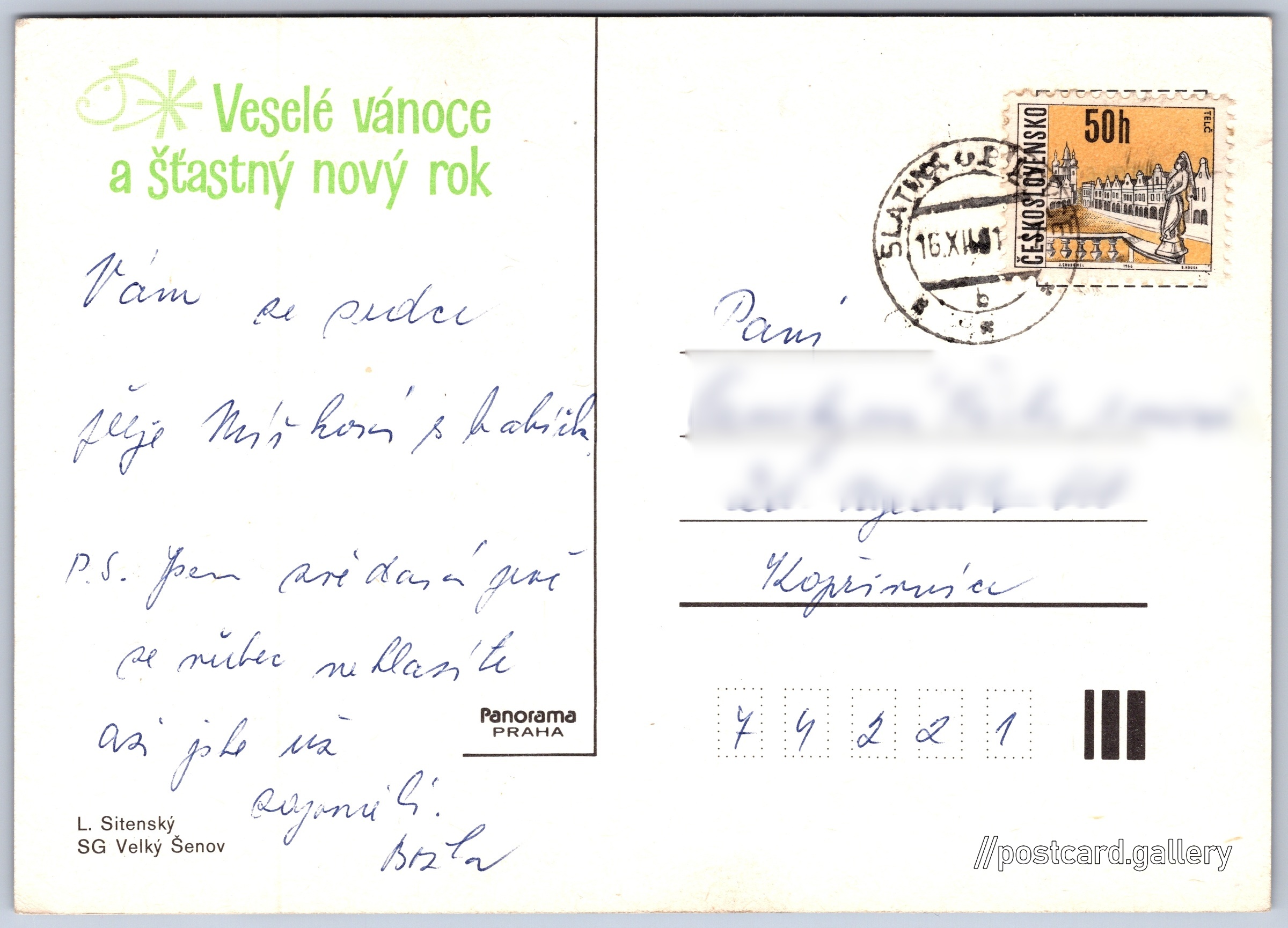 Vánoční přání, zasněžená krajina Pokud chcete vidět pohlednice ve vyšším rozlišení nebo zobrazovat jejich zadní stranu, tak se prosím nejdříve přihlašte Přihlásit Zaregistrovat Veselé vánoce a šťastný nový rok Jazyk tištěného textu na pohlednici: čeština Vydavatel: Panorama (Československo) Datum vydání není známo Pomozte nám odhadnout datum vzniku pohlednice Velikost (š x v) a tvar pohlednice: 146 x 104 mm (5.75" x 4.09"), obdélník Osoby spjaté s touto pohlednicí: Ladislav Sitenský(Autor fotografie) Prošlá poštou Ceny: Vyplacené známky: 0,50 Kčs (CSK) DiskuseVložit příspěvek Přidat novou složku ... Spravovat složky ...