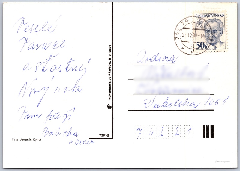 Vánoční přání Pokud chcete vidět pohlednice ve vyšším rozlišení nebo zobrazovat jejich zadní stranu, tak se prosím nejdříve přihlašte Přihlásit Zaregistrovat Jazyk tištěného textu na pohlednici: čeština Vydavatel: Nakladateľstvo PRAVDA, Bratislava (Československo) Odhadované datum vydání pohlednice: 1984 - 1987 Pomozte nám zpřesnit rok vzniku pohlednice Velikost (š x v) a tvar pohlednice: 148 x 105 mm (5.83" x 4.13"), obdélník Osoby spjaté s touto pohlednicí: Antonín Kyndr(Autor fotografie) Prošlá poštou:Datum na razítku: 21.12.1987 Ceny: Vyplacené známky: 0,50 Kčs (CSK) DiskuseVložit příspěvek Přidat novou složku ... Spravovat složky ...