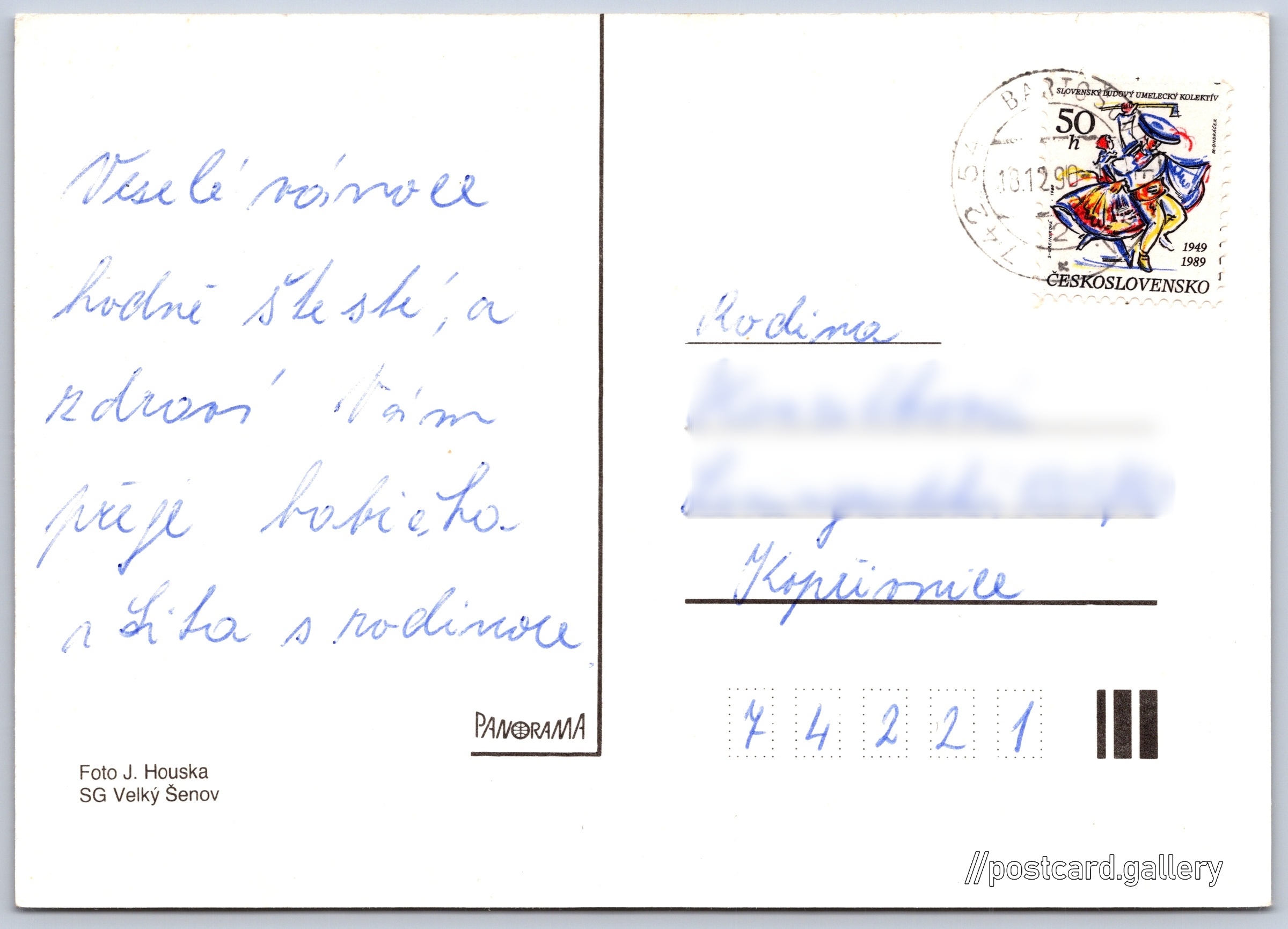 Vánoční přání Pokud chcete vidět pohlednice ve vyšším rozlišení nebo zobrazovat jejich zadní stranu, tak se prosím nejdříve přihlašte Přihlásit Zaregistrovat Veselé vánoce Jazyk tištěného textu na pohlednici: čeština Vydavatel: Panorama (Československo) Odhadované datum vydání pohlednice: 1987 - 1990 Pomozte nám zpřesnit rok vzniku pohlednice Velikost (š x v) a tvar pohlednice: 146 x 105 mm (5.75" x 4.13"), obdélník Osoby spjaté s touto pohlednicí: J. Houska(Autor fotografie) Prošlá poštou:Datum na razítku: 18.12.1990 Ceny: Vyplacené známky: 0,50 Kčs (CSK) DiskuseVložit příspěvek Přidat novou složku ... Spravovat složky ...