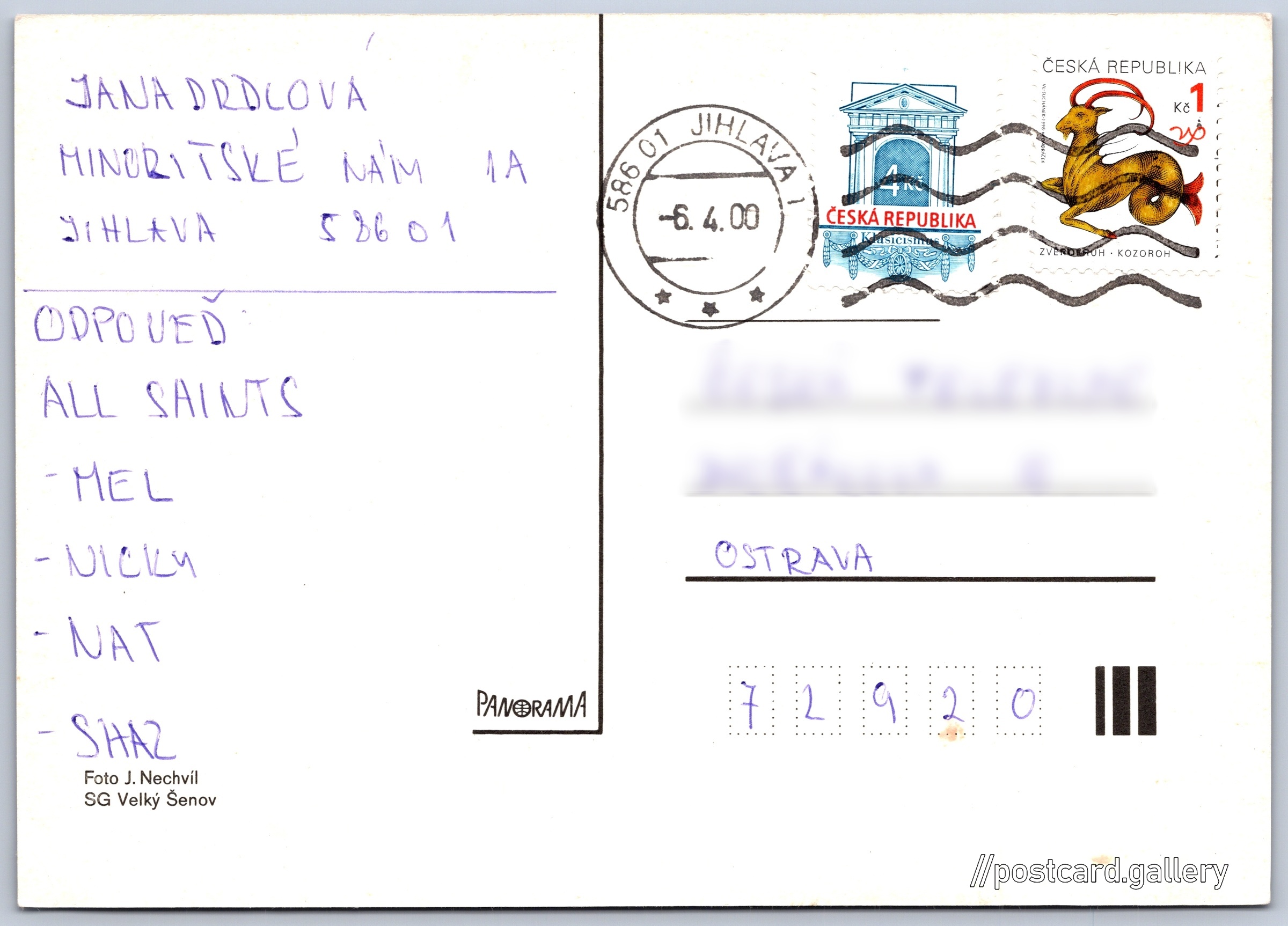 Váza s květinami Pokud chcete vidět pohlednice ve vyšším rozlišení nebo zobrazovat jejich zadní stranu, tak se prosím nejdříve přihlašte Přihlásit Zaregistrovat Jazyk tištěného textu na pohlednici: čeština Vydavatel: Panorama (Československo) Datum vydání není známo Pomozte nám odhadnout datum vzniku pohlednice Velikost (š x v) a tvar pohlednice: 145 x 104 mm (5.71" x 4.09"), obdélník Osoby spjaté s touto pohlednicí: Jiří Nechvíl(Autor fotografie) Prošlá poštou:Datum na razítku: 6.4.2000 Ceny: Vyplacené známky: 5,00 Kč (CZK) DiskuseVložit příspěvek Přidat novou složku ... Spravovat složky ...
