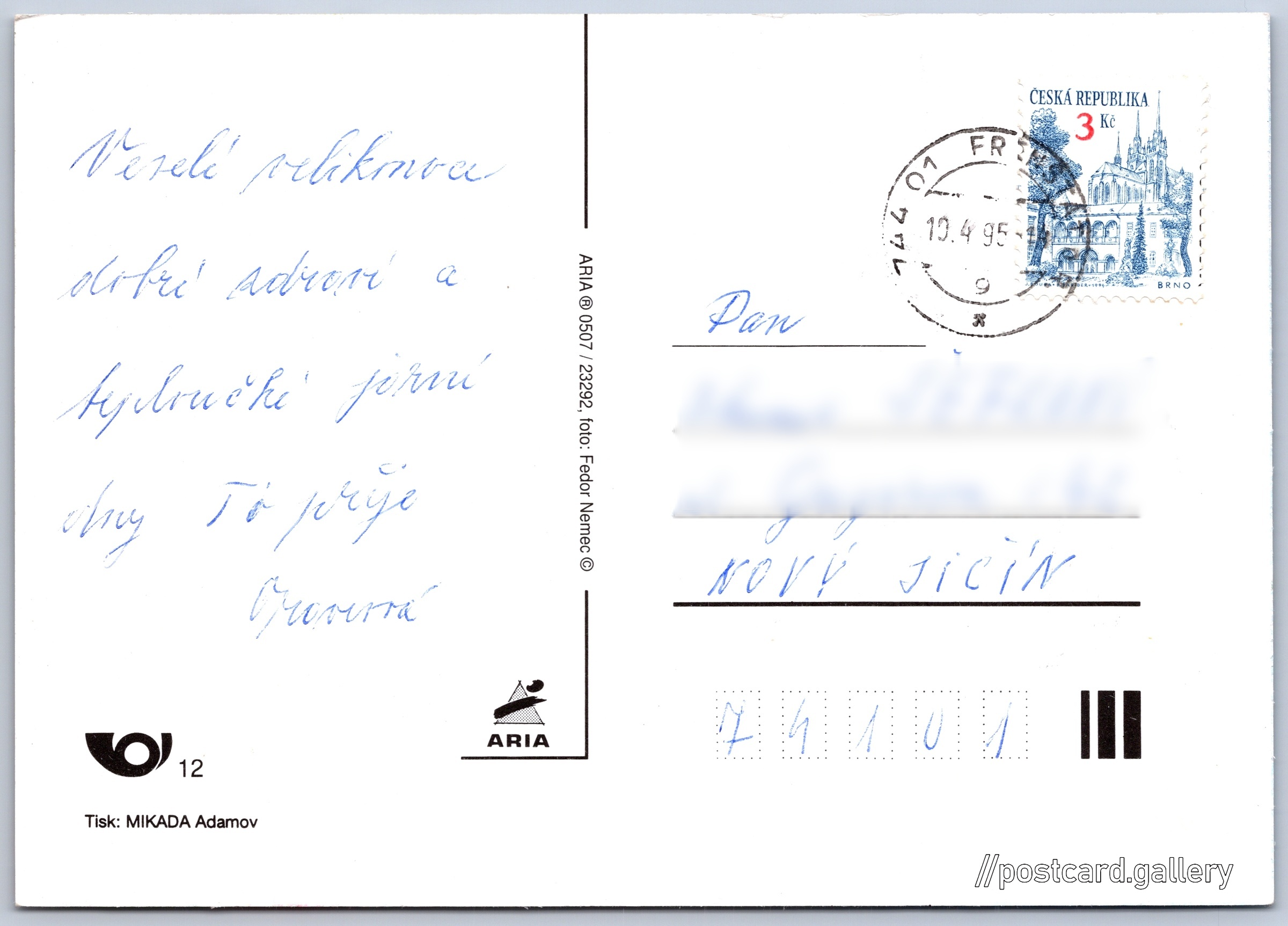 Jazyk tištěného textu na pohlednici: