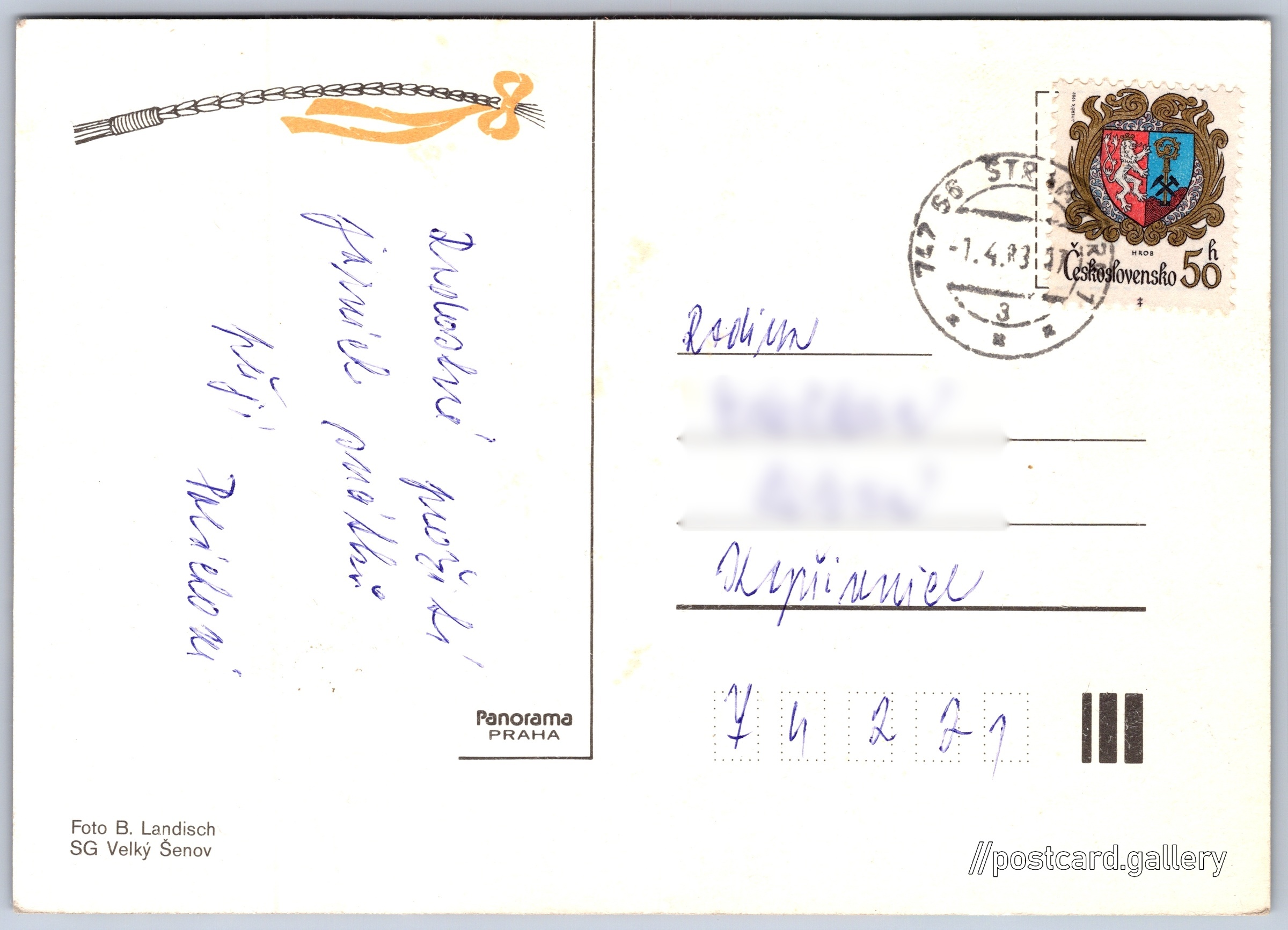 Jazyk tištěného textu na pohlednici: