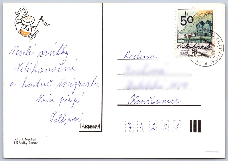 Jazyk tištěného textu na pohlednici: