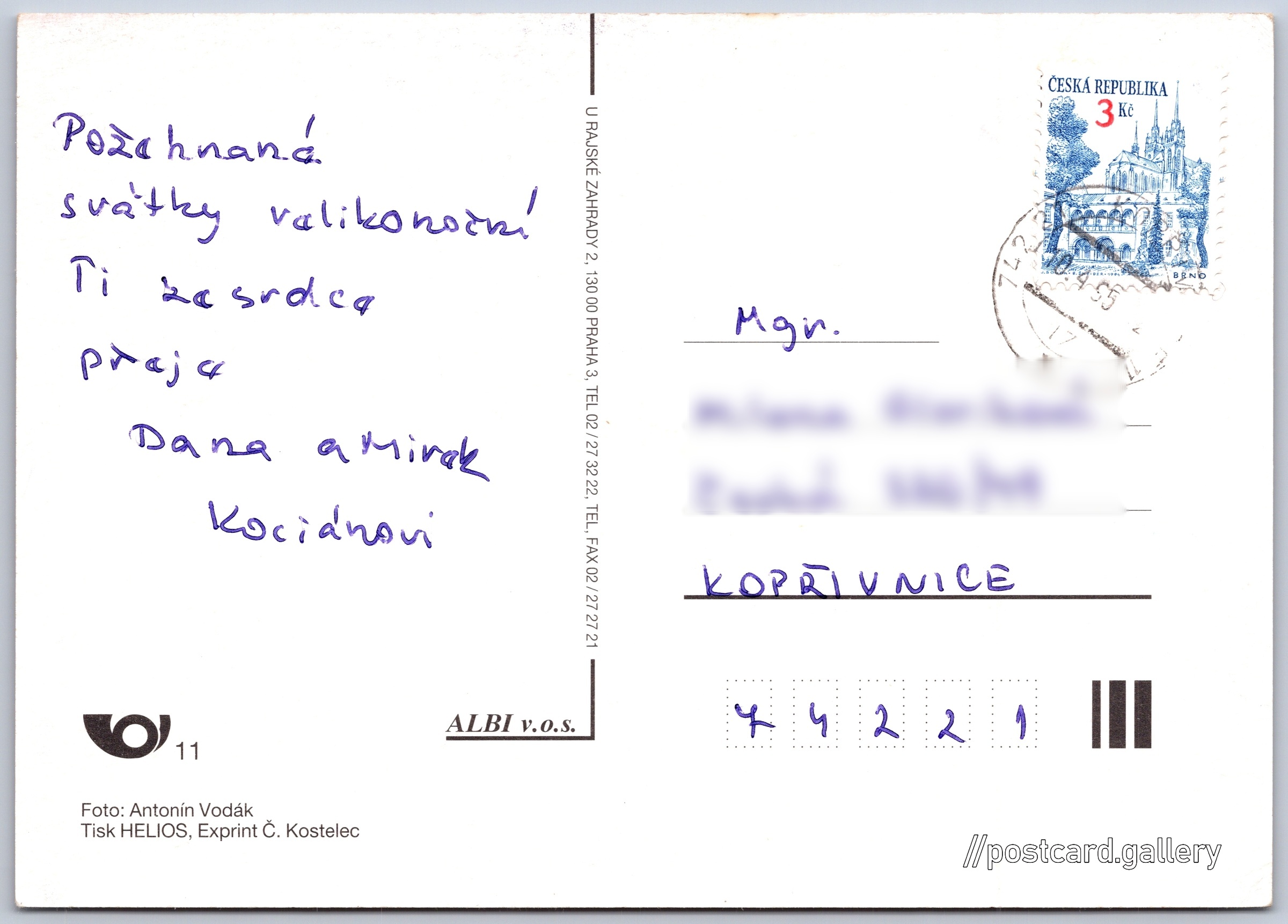 Jazyk tištěného textu na pohlednici: