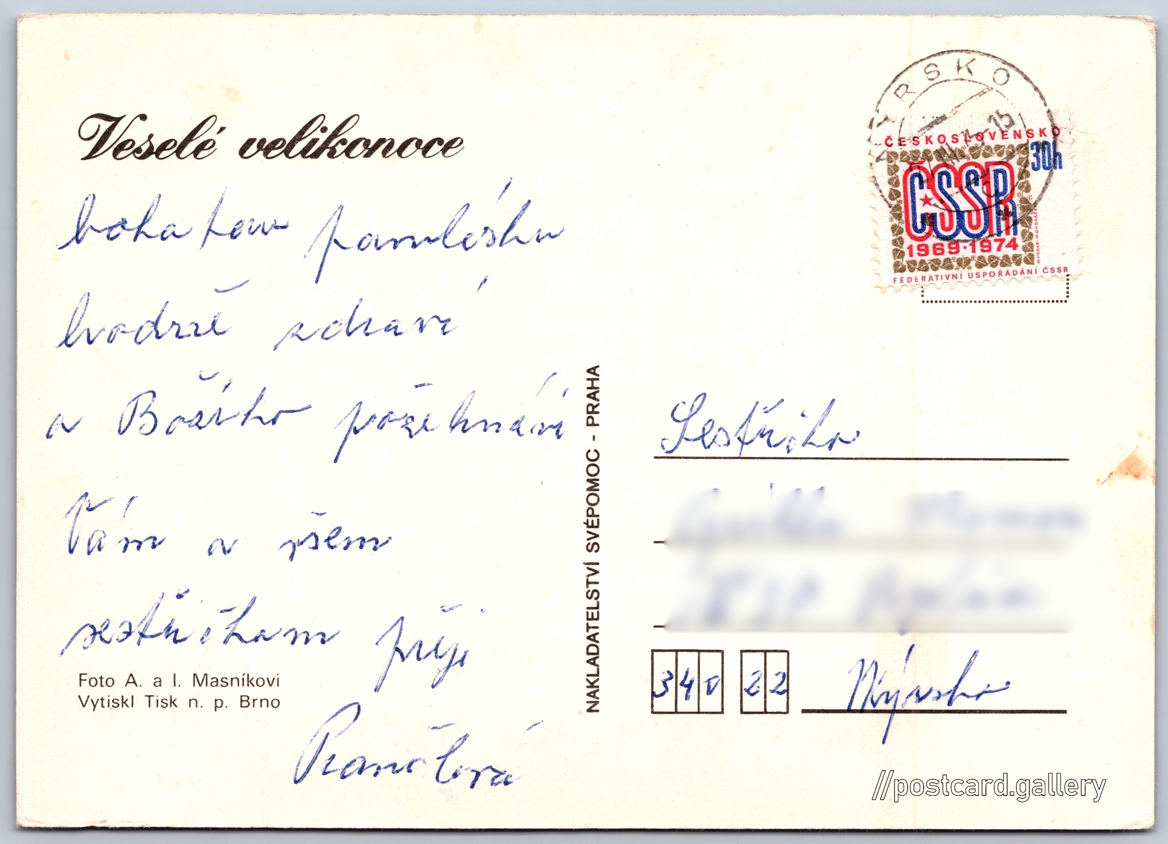 Jazyk tištěného textu na pohlednici: