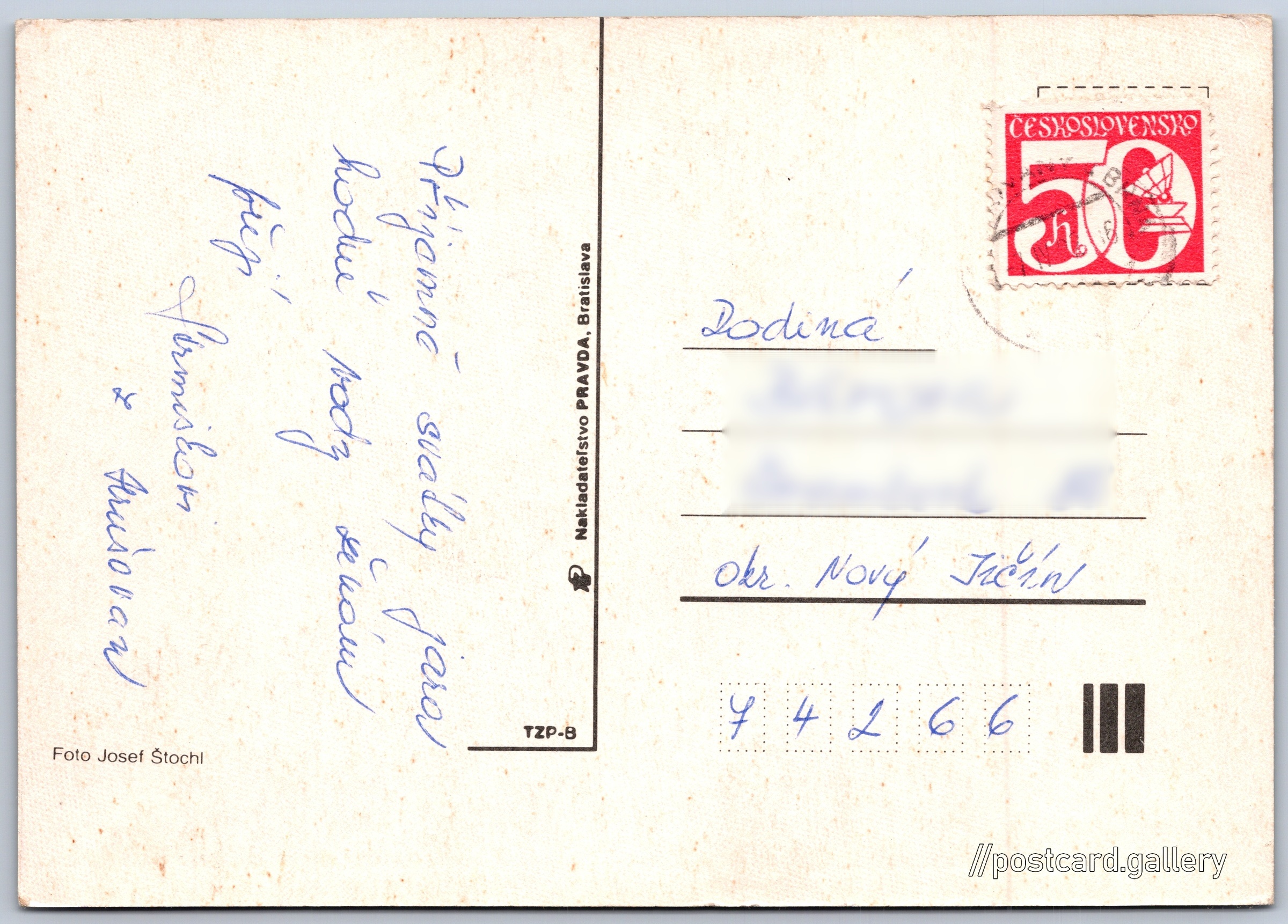Jazyk tištěného textu na pohlednici: