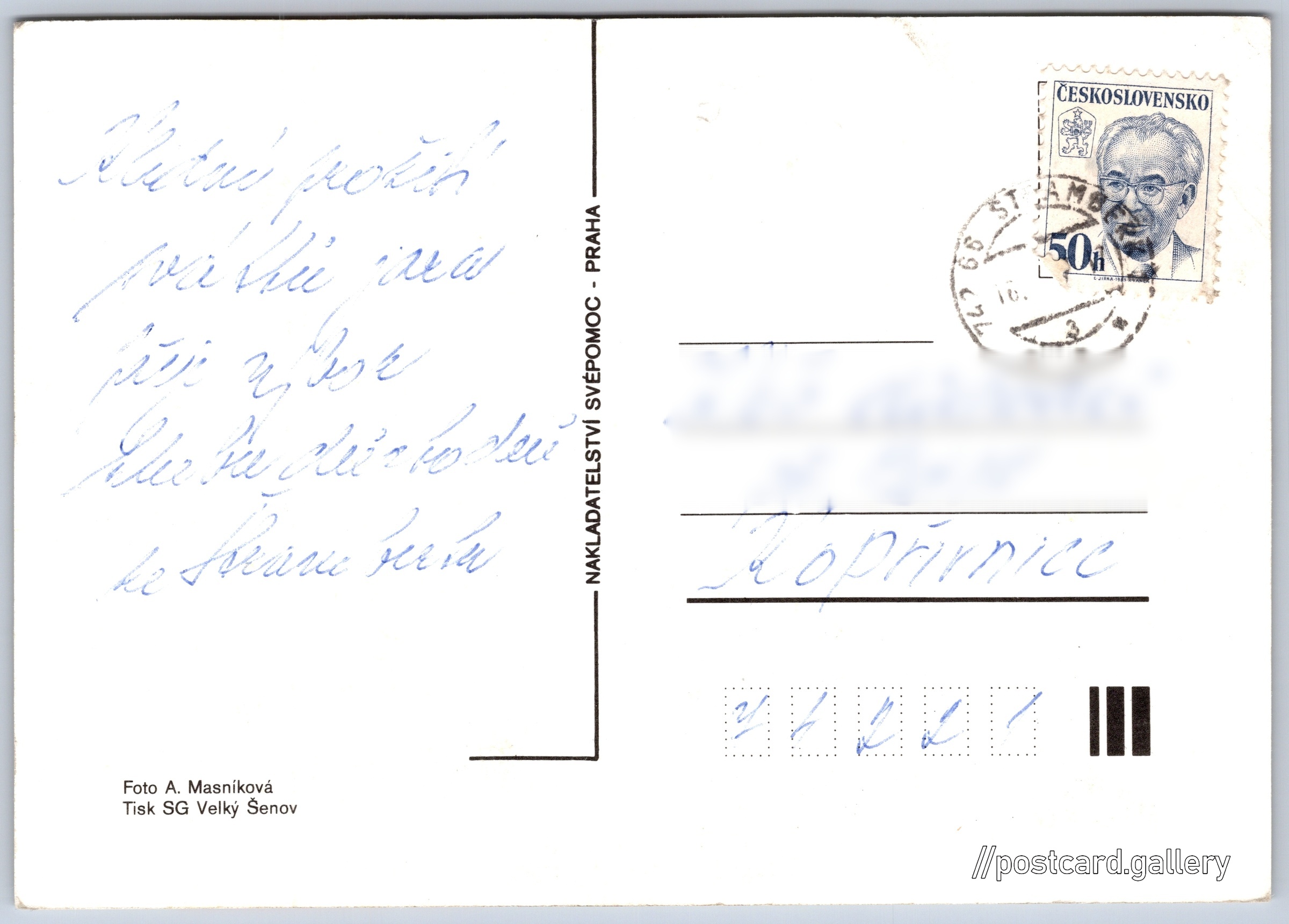 Jazyk tištěného textu na pohlednici: