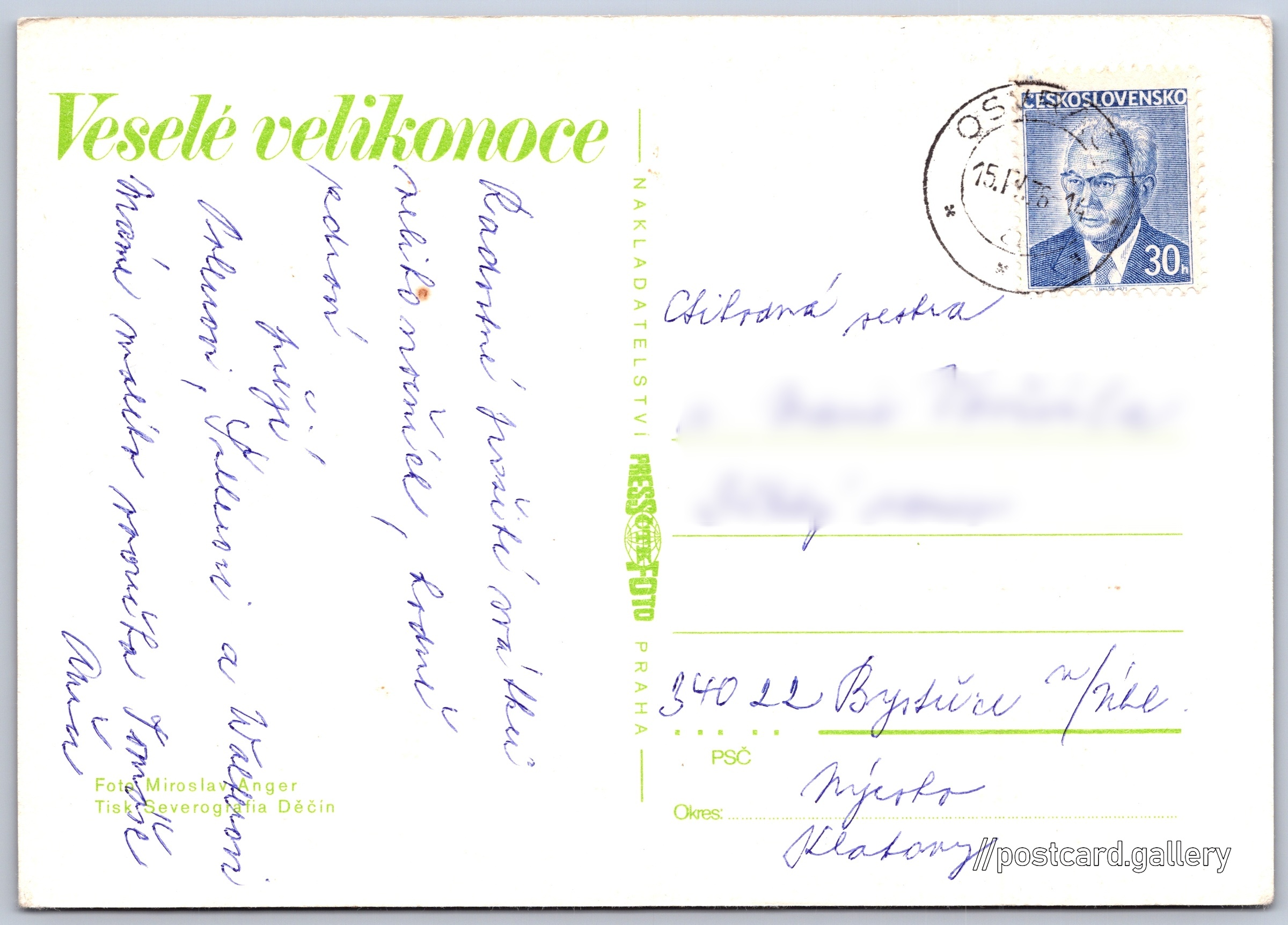 Jazyk tištěného textu na pohlednici: