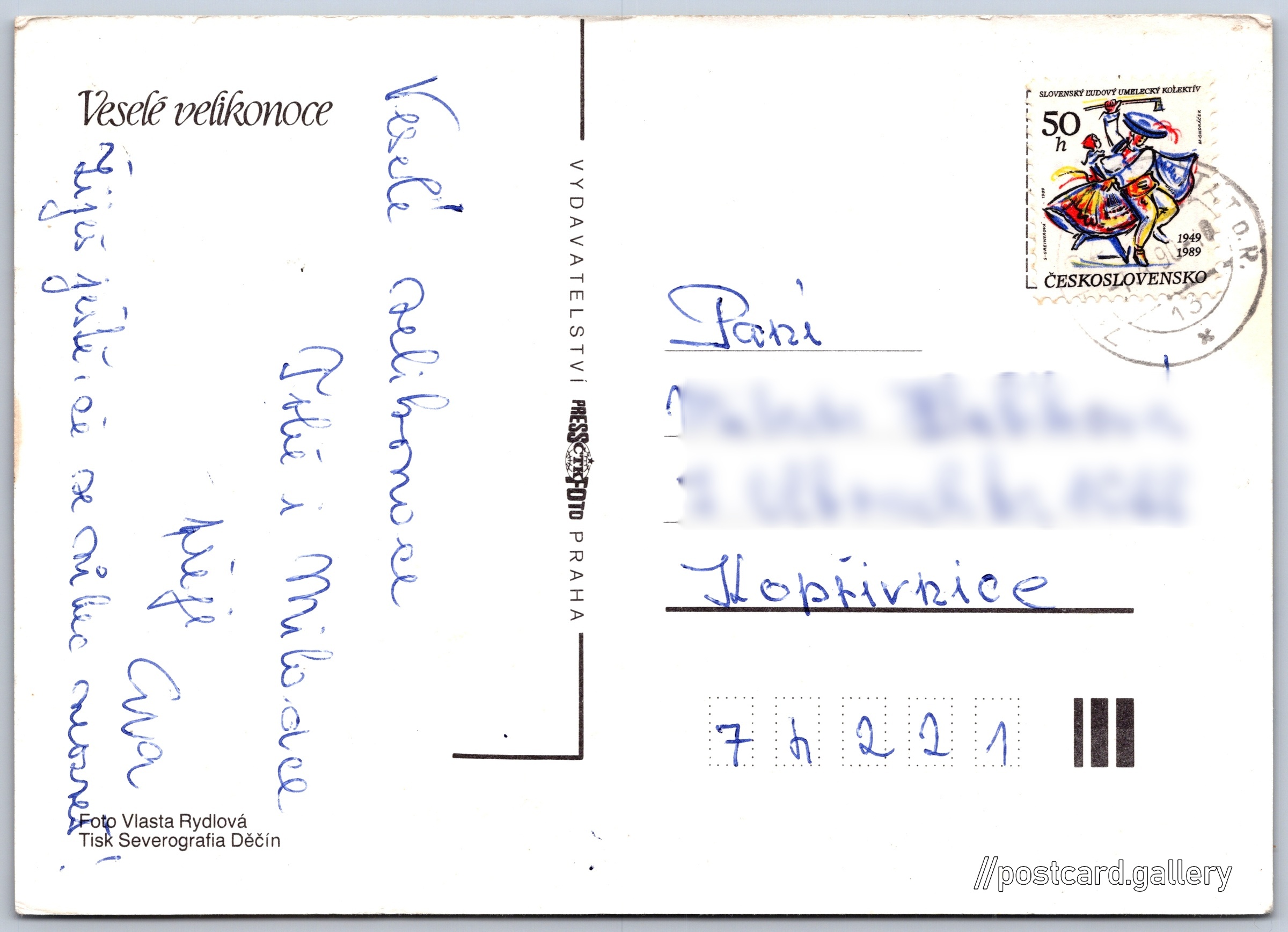 Jazyk tištěného textu na pohlednici: