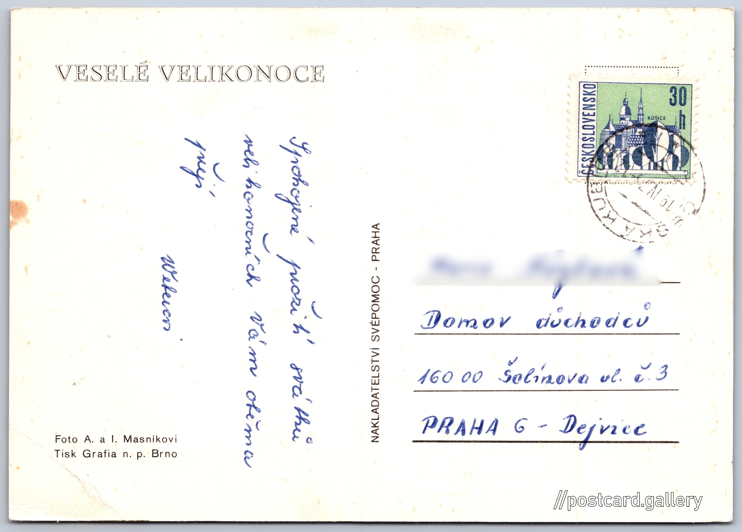 Jazyk tištěného textu na pohlednici: