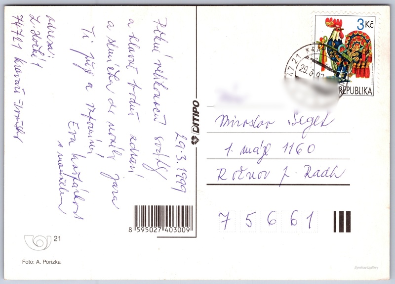 Jazyk tištěného textu na pohlednici:
