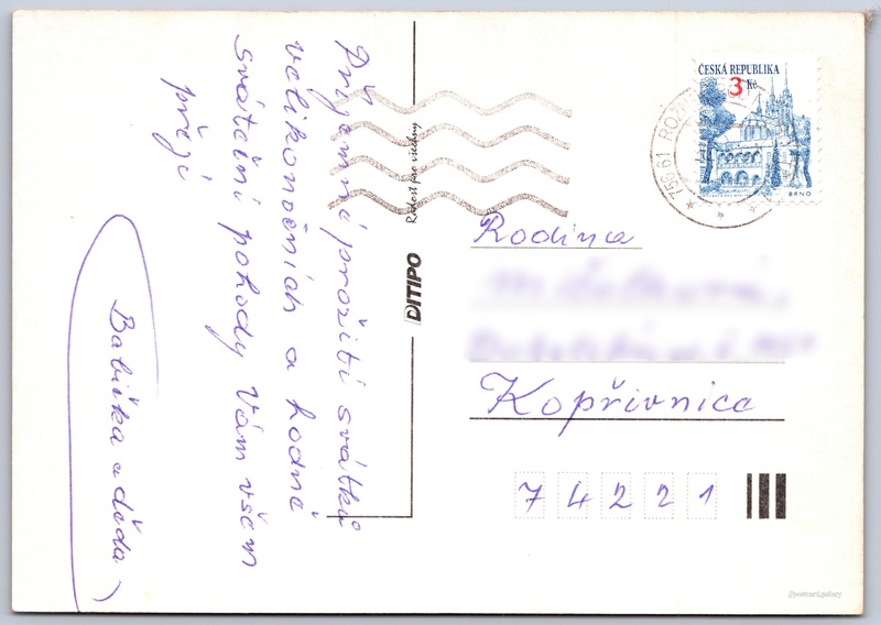 Velikonoční přání Pokud chcete vidět pohlednice ve vyšším rozlišení nebo zobrazovat jejich zadní stranu, tak se prosím nejdříve přihlašte Přihlásit Zaregistrovat Veselé velikonoční svátky Jazyk tištěného textu na pohlednici: čeština Vydavatel: Ditipo (Česko) Odhadované datum vydání pohlednice: 1994 - 1997 Pomozte nám zpřesnit rok vzniku pohlednice Velikost (š x v) a tvar pohlednice: 149 x 105 mm (5.87" x 4.13"), obdélník Prošlá poštou Ceny: Vyplacené známky: 3,00 Kč (CZK) DiskuseVložit příspěvek Přidat novou složku ... Spravovat složky ...