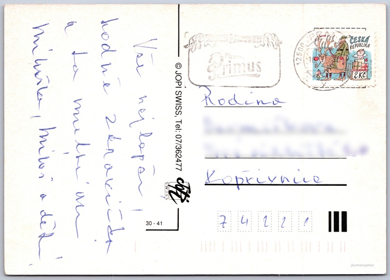 Veselé vánoce a šťastný nový rok Pokud chcete vidět pohlednice ve vyšším rozlišení nebo zobrazovat jejich zadní stranu, tak se prosím nejdříve přihlašte Přihlásit Zaregistrovat Veselé vánoce a šťastný nový rok Jazyk tištěného textu na pohlednici: čeština Vydavatel: Jopi Swiss (Česko) Odhadované datum vydání pohlednice: 1993 - 1995 Pomozte nám zpřesnit rok vzniku pohlednice Velikost (š x v) a tvar pohlednice: 148 x 105 mm (5.83" x 4.13"), obdélník Prošlá poštou Ceny: Vyplacené známky: 2,00 Kč (CZK) Kódy na pohlednici: 30-41 DiskuseVložit příspěvek Přidat novou složku ... Spravovat složky ...
