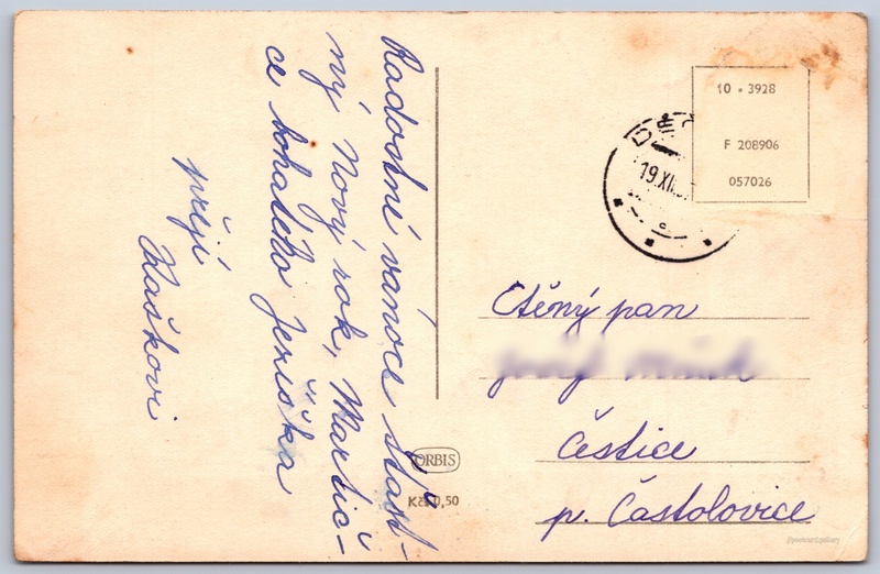 Veselé vánoce Pokud chcete vidět pohlednice ve vyšším rozlišení nebo zobrazovat jejich zadní stranu, tak se prosím nejdříve přihlašte Přihlásit Zaregistrovat Veselé vánoce Jazyk tištěného textu na pohlednici: čeština Vydavatel: Nakladatelství Orbis (Československo) Odhadované datum vydání pohlednice: 1954 - 1957 Pomozte nám zpřesnit rok vzniku pohlednice Velikost (š x v) a tvar pohlednice: 137 x 89 mm (5.39" x 3.50"), obdélník Prošlá poštou:Datum na razítku: 19.12.1957 Ceny: Cena pohlednice: 0,50 Kčs (CSK) Kódy na pohlednici: 10-3928 F 208906 057026 DiskuseVložit příspěvek Přidat novou složku ... Spravovat složky ...