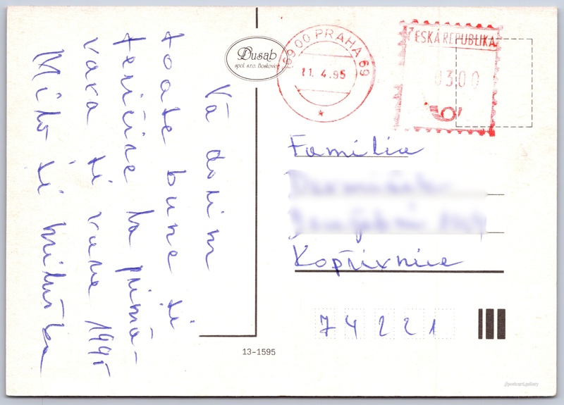 Veselé velikonoce Pokud chcete vidět pohlednice ve vyšším rozlišení nebo zobrazovat jejich zadní stranu, tak se prosím nejdříve přihlašte Přihlásit Zaregistrovat Veselé velikonoce Jazyk tištěného textu na pohlednici: čeština Vydavatel: Dusab s.r.o. (Česko) Rok vydání pohlednice: 1995 Velikost (š x v) a tvar pohlednice: 147 x 104 mm (5.79" x 4.09"), obdélník Prošlá poštou:Datum na razítku: 11.4.1995 Ceny: Vyplacené známky: 3,00 Kč (CZK) DiskuseVložit příspěvek Přidat novou složku ... Spravovat složky ...